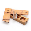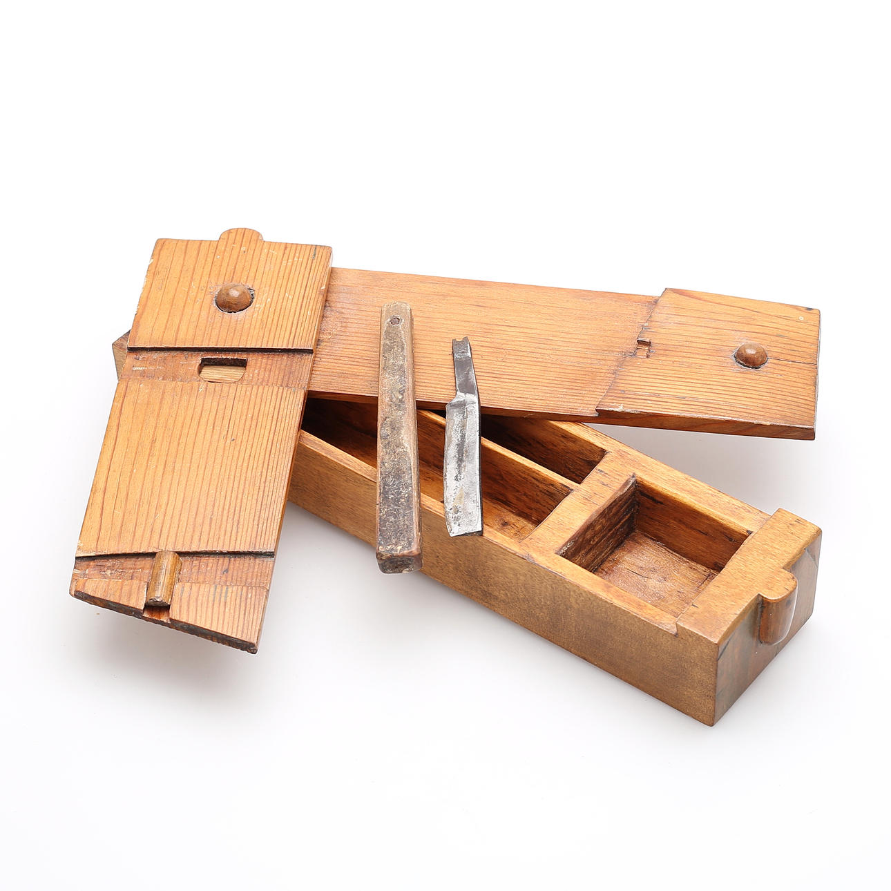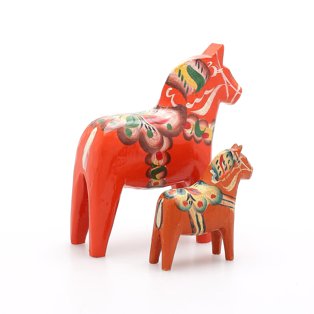Dala horses height 7.5 and 13 cm Shaving box length 33.5 cm Knife.