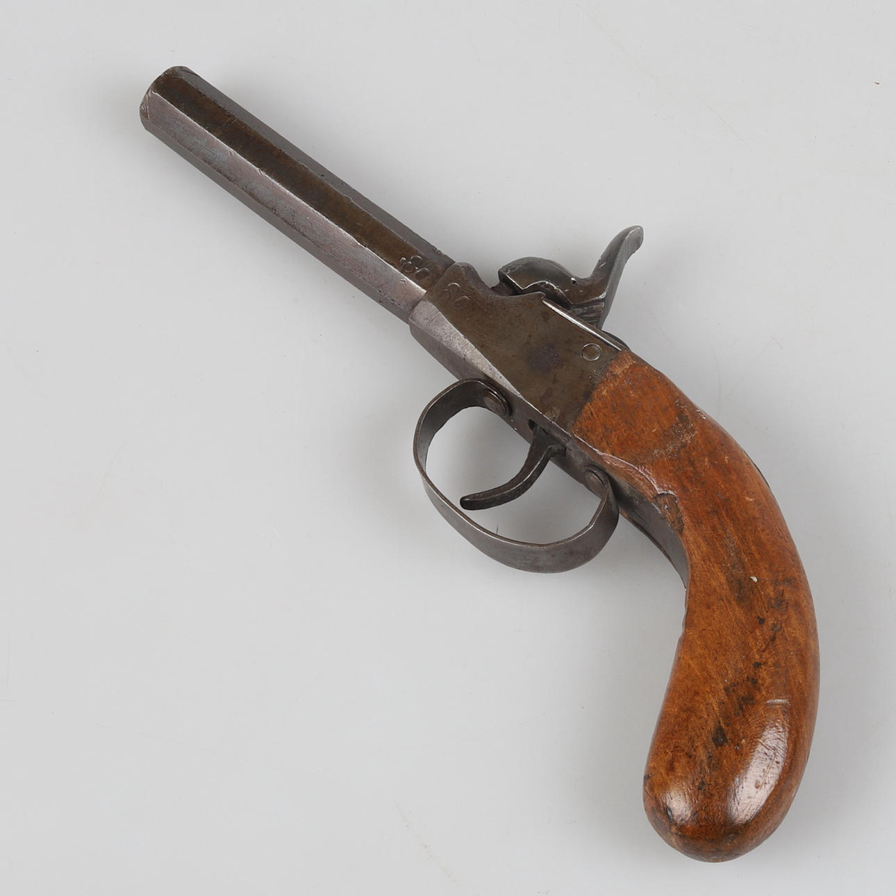 Single barrel pocket pistol with octagonal barrel. Length 20 cm.