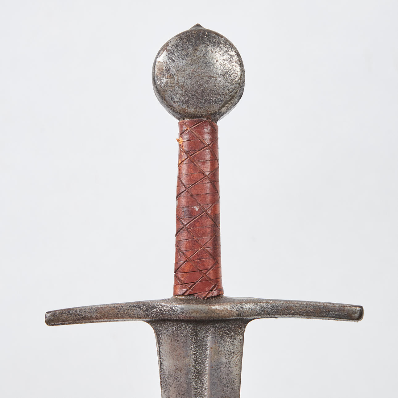 Sword / short sword, replica. Short sword made of iron, with a handle wrapped in leather, L.83cm, blade length: 67cm, W.18cm.
