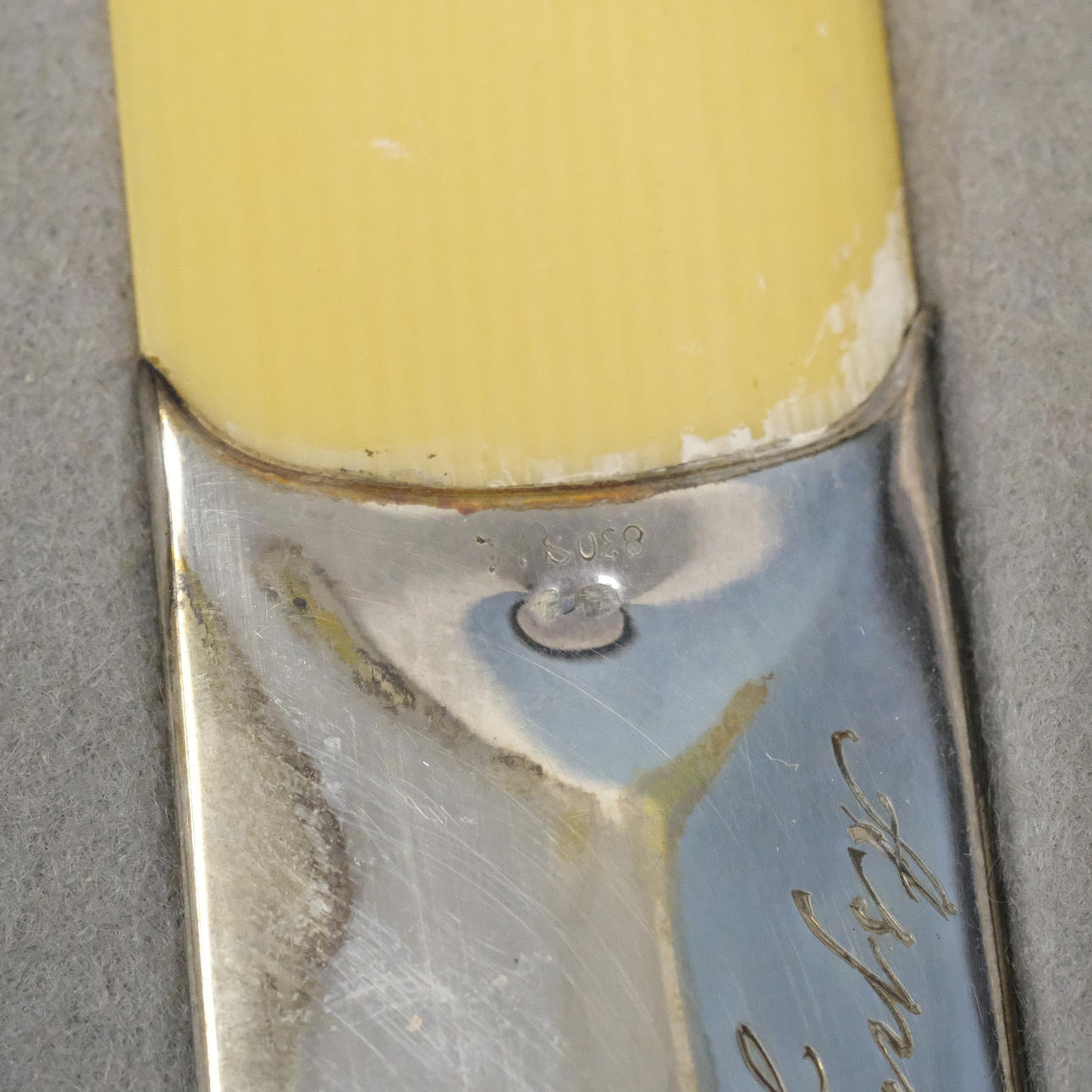 Engraving, Normal wear and tear, case with damage. A handle off.