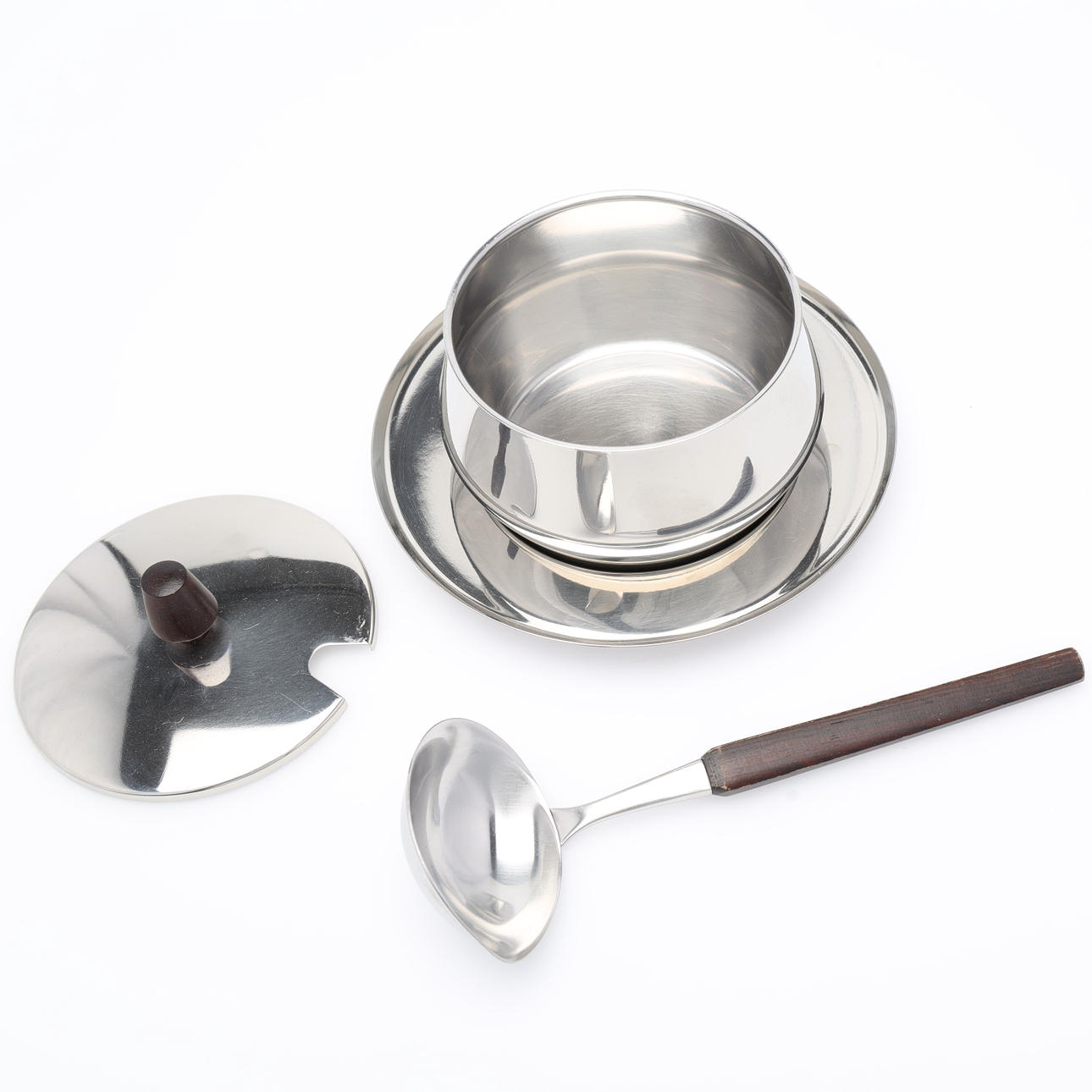 Stainless steel with teak details. Stamped "Nils Johansson Stainless steel 18 - 8 Sweden".