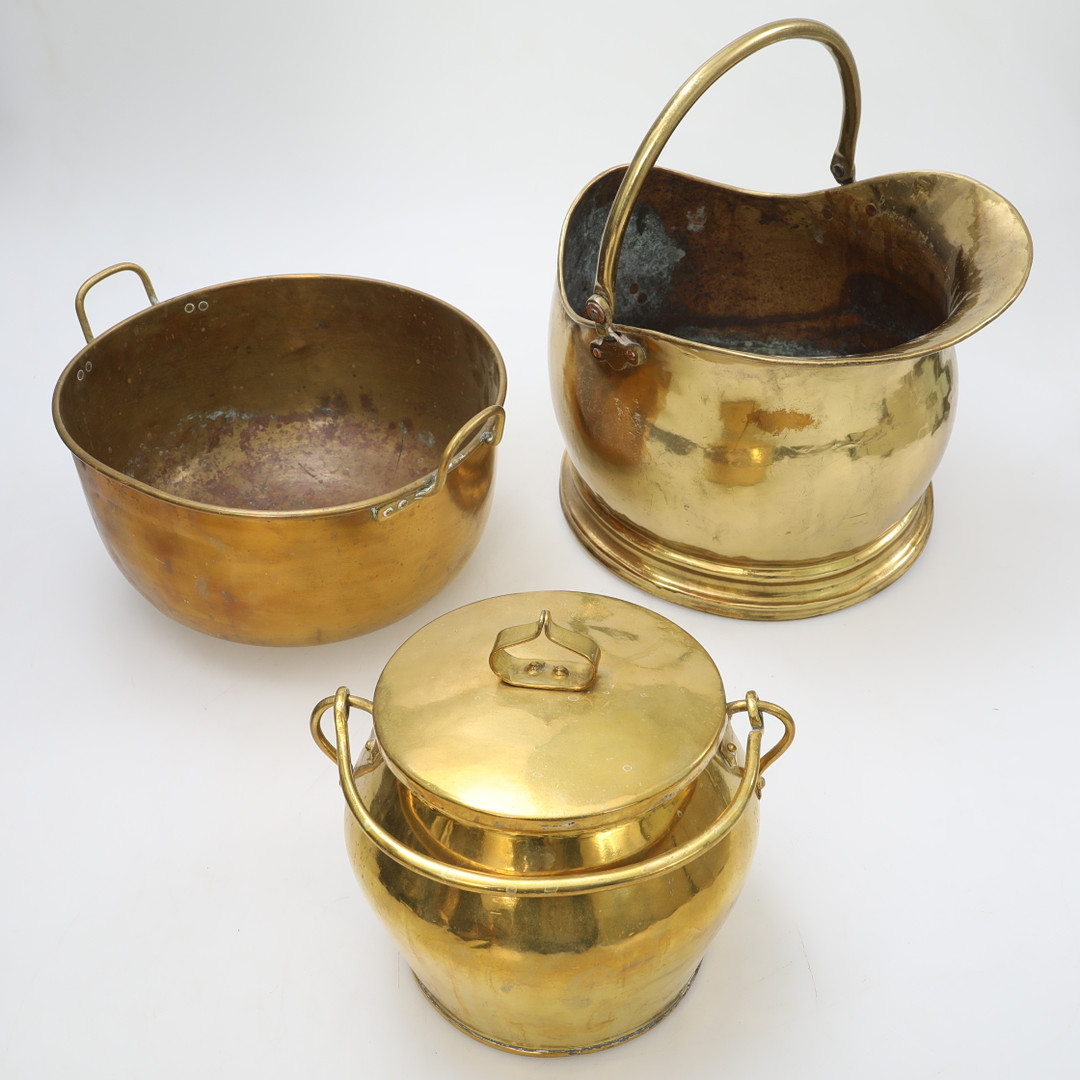 2530414. BRASS OBJECTS, 3 pcs, 1900s.