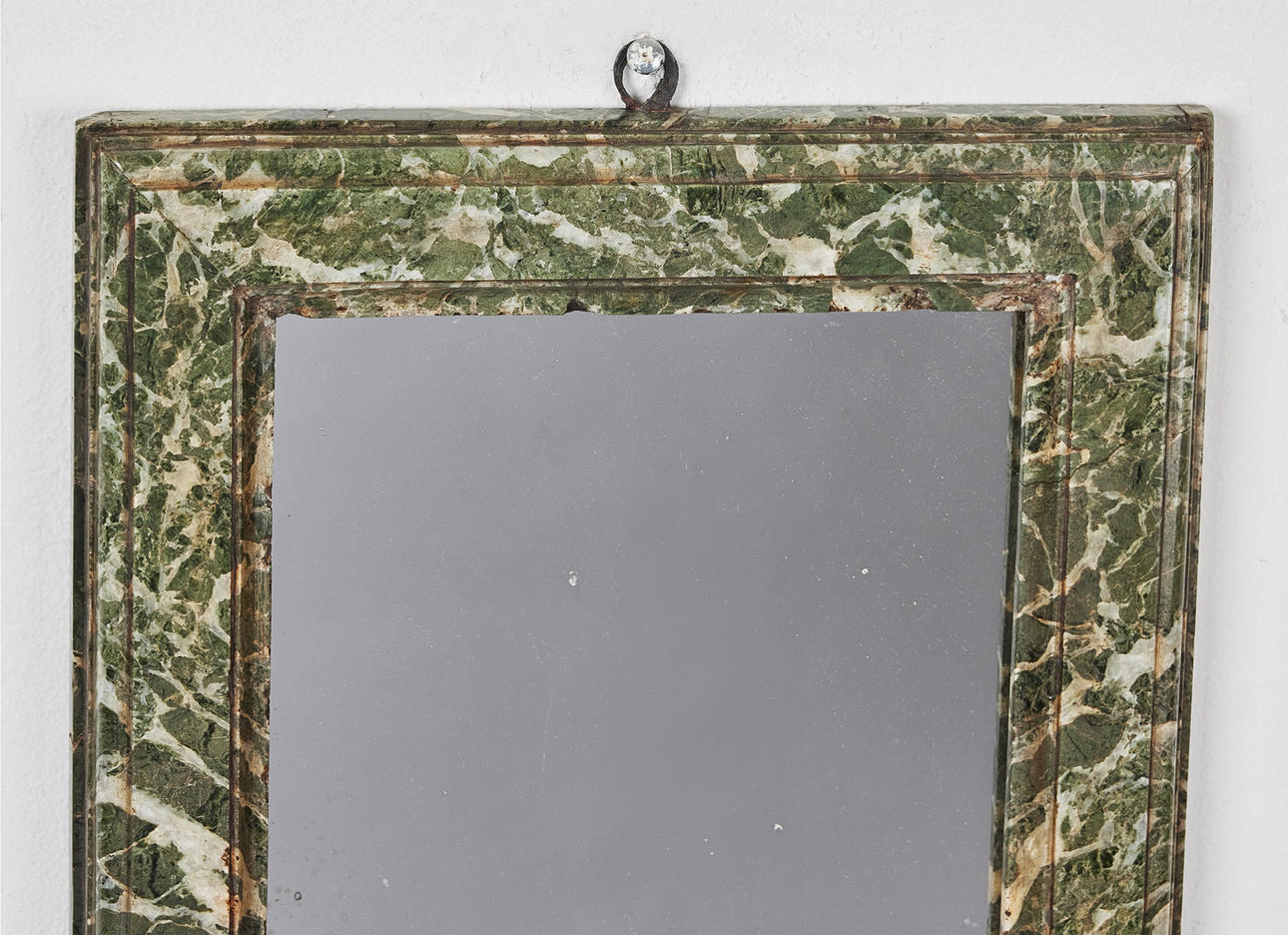 MIRROR, 19th century, veneered with marble, profiled decor, mercury foiled glass, wrought iron suspension.