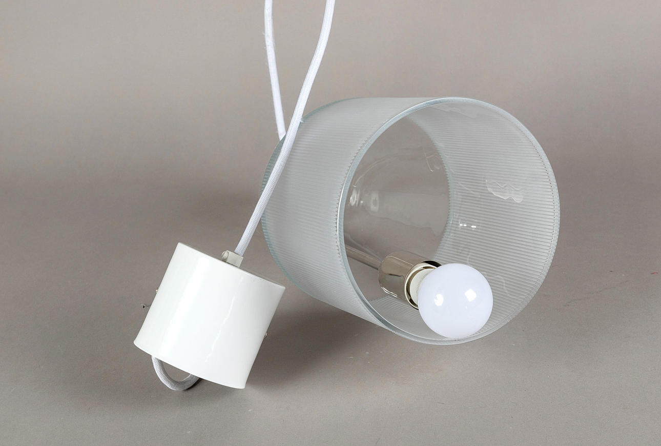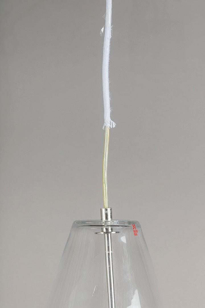 Pendant lamp 'IGNIS' by Bomma. Clear glass lampshade, white textile cable.