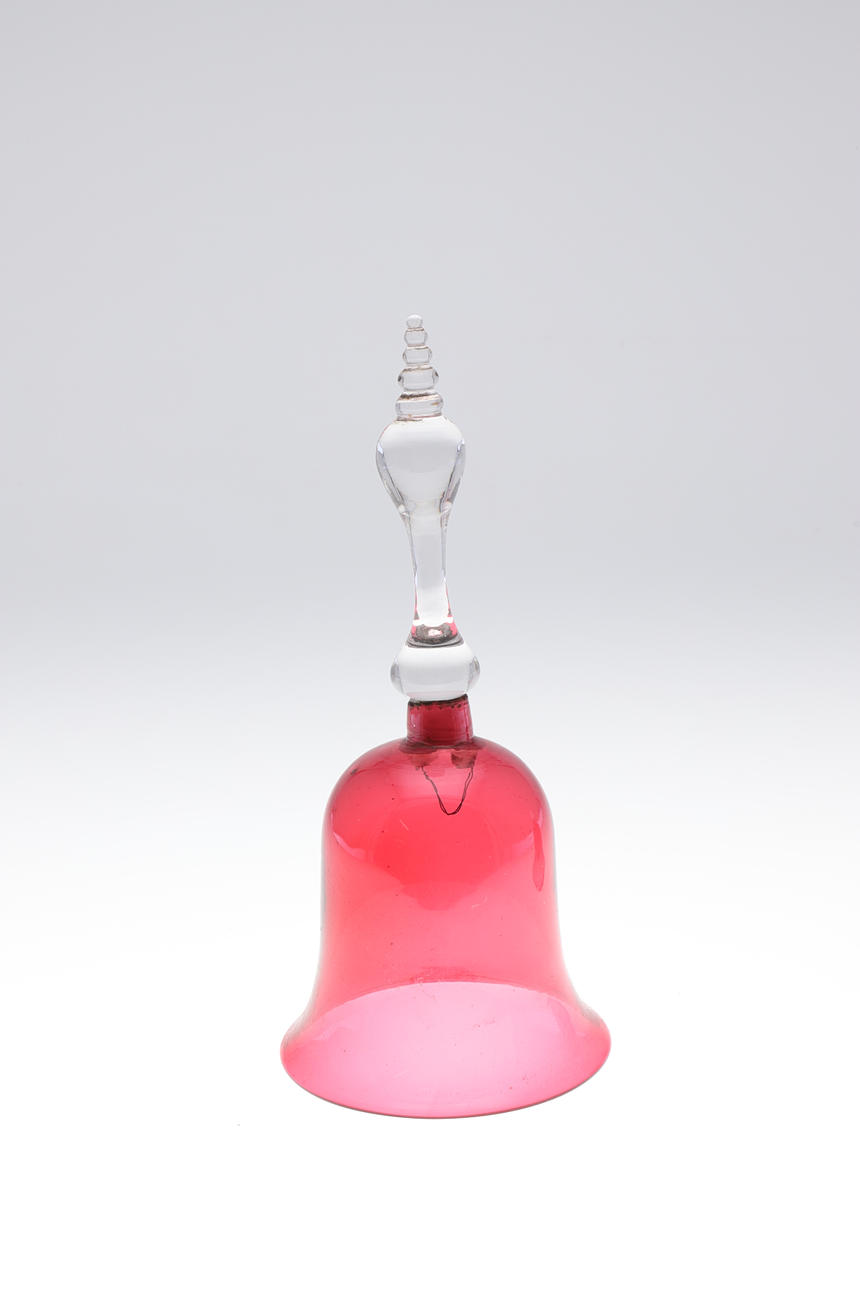 TWO VICTORIAN CRANBERRY GLASS BELLS.