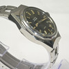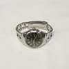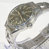 Steel case, olive/dark green colored dial, date.