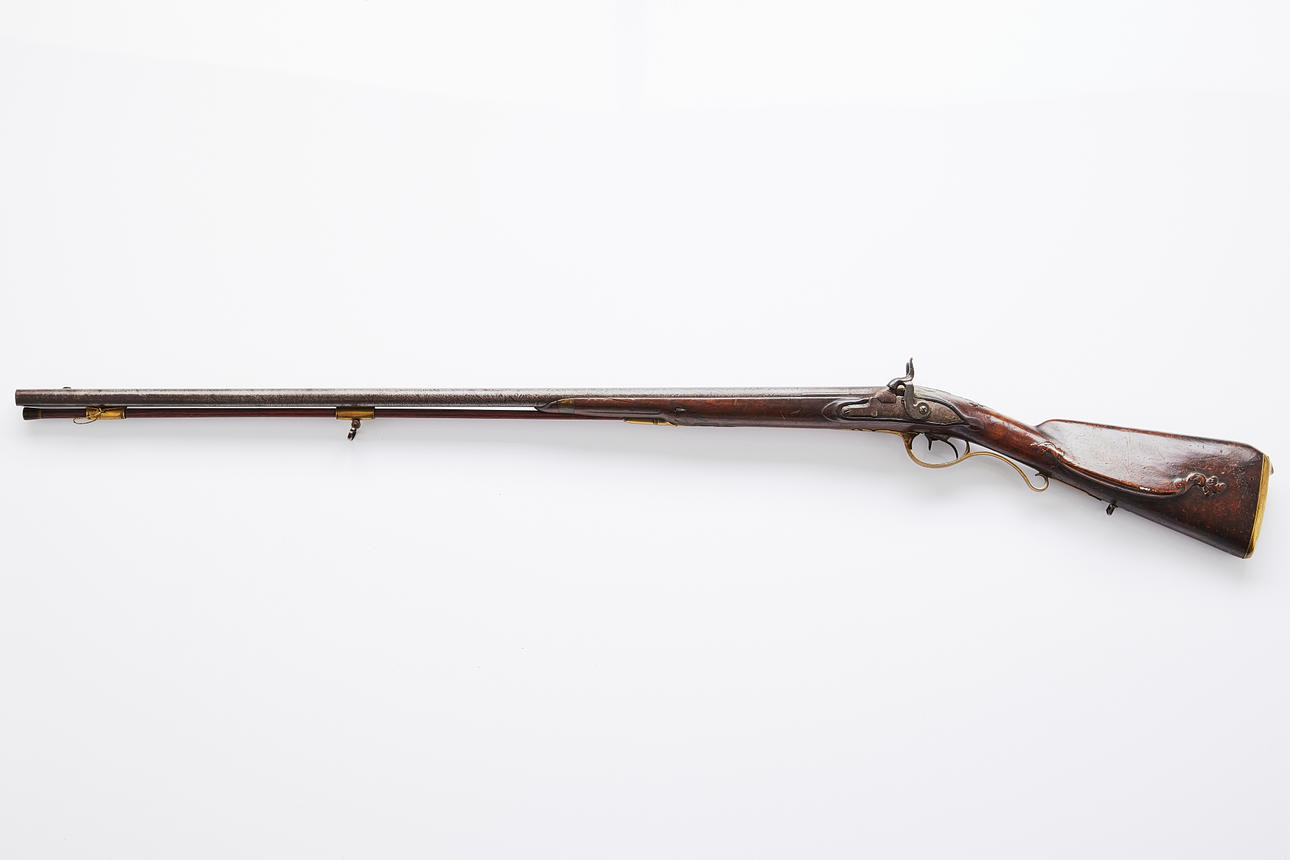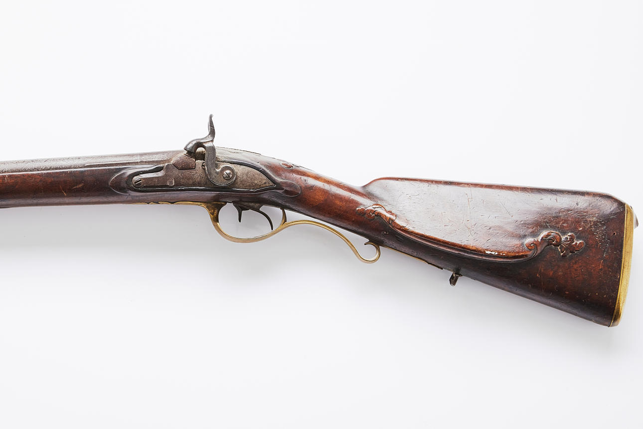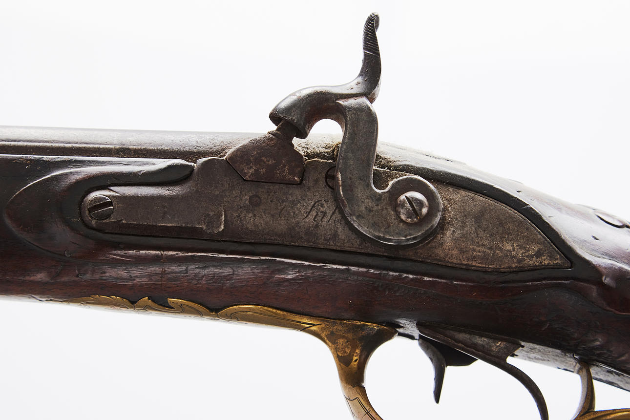 Unclear markings on the lock plate, masking barrels, cut half-stock with engraved brass fittings, length approx. 130 cm Provenance: Gun collector Jan Ståhl, Malmö.