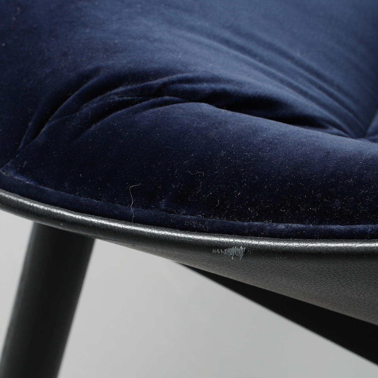 Velvet-covered seat and leather-covered back. On blackened oak legs. Seat height approx. 39 cm.