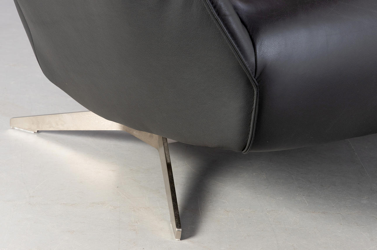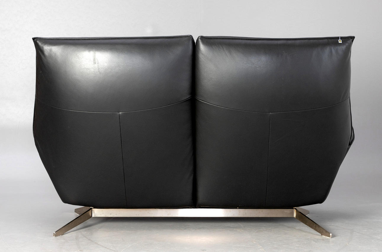 Black leather 2-seater sofa from the 'Evita' series by Koinor. Base made of stainless steel.