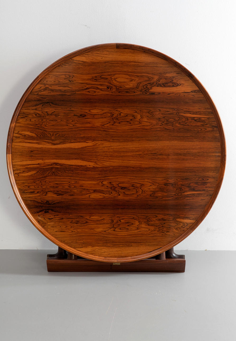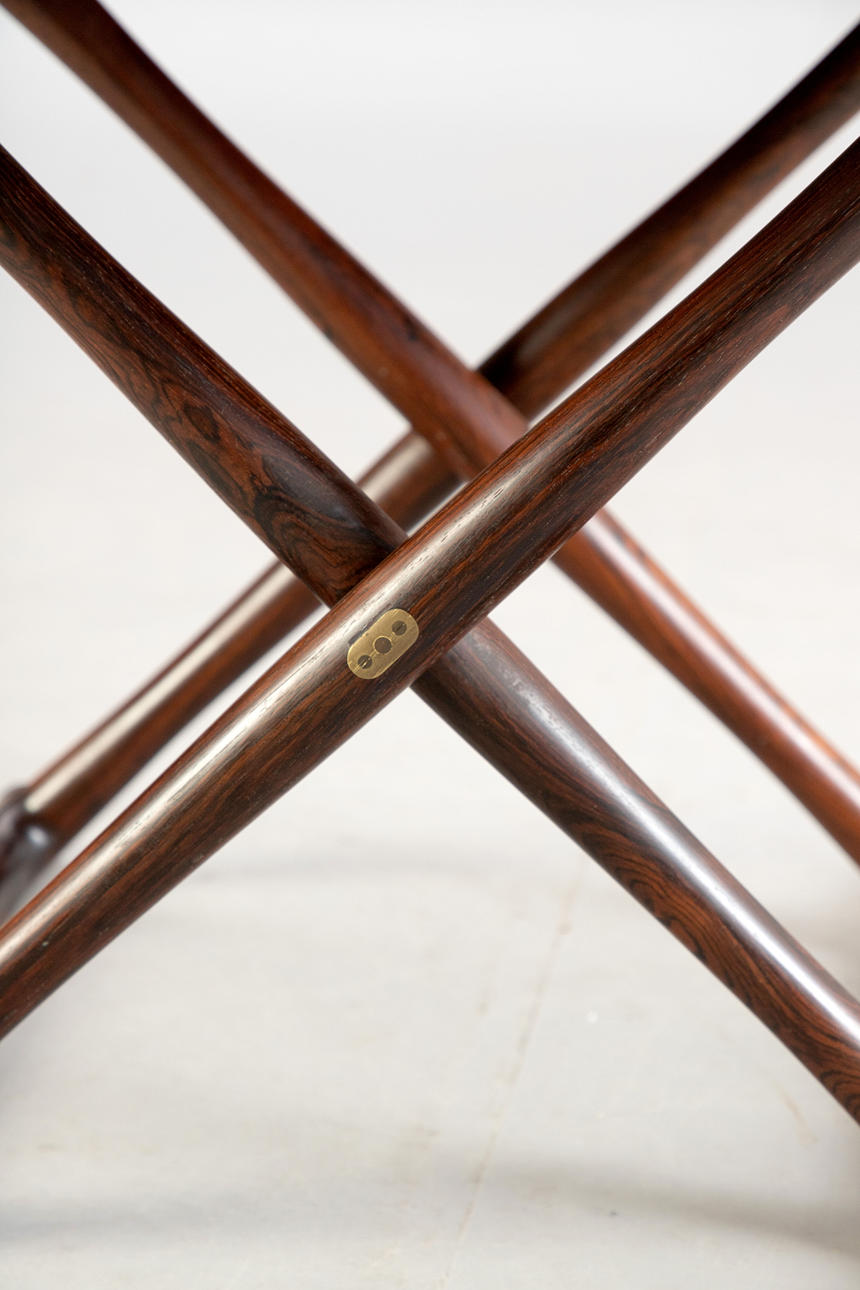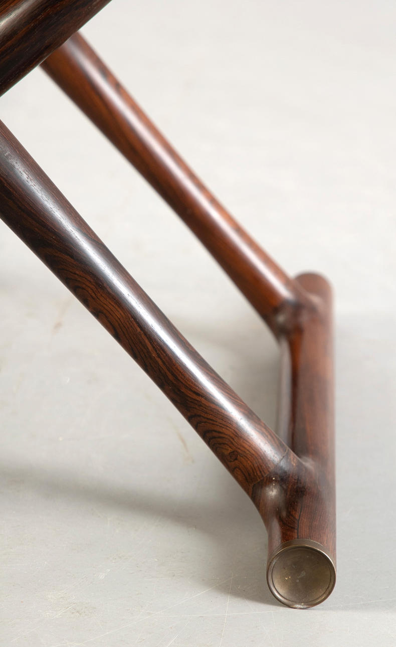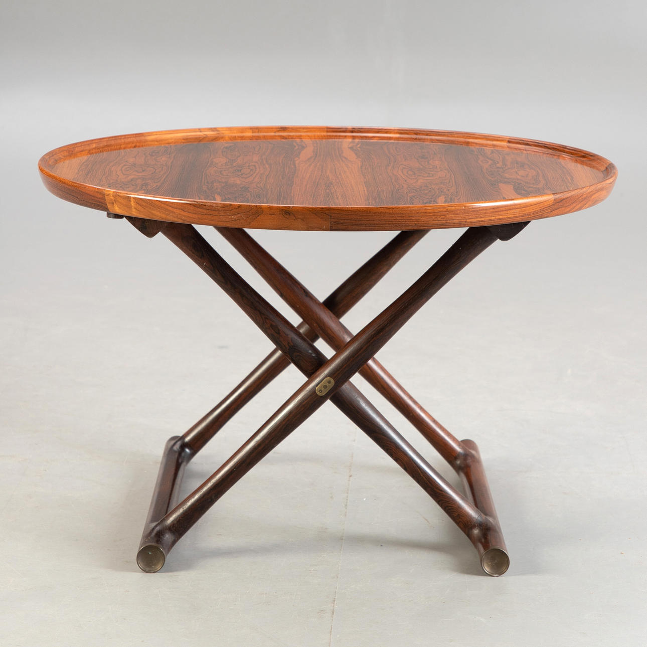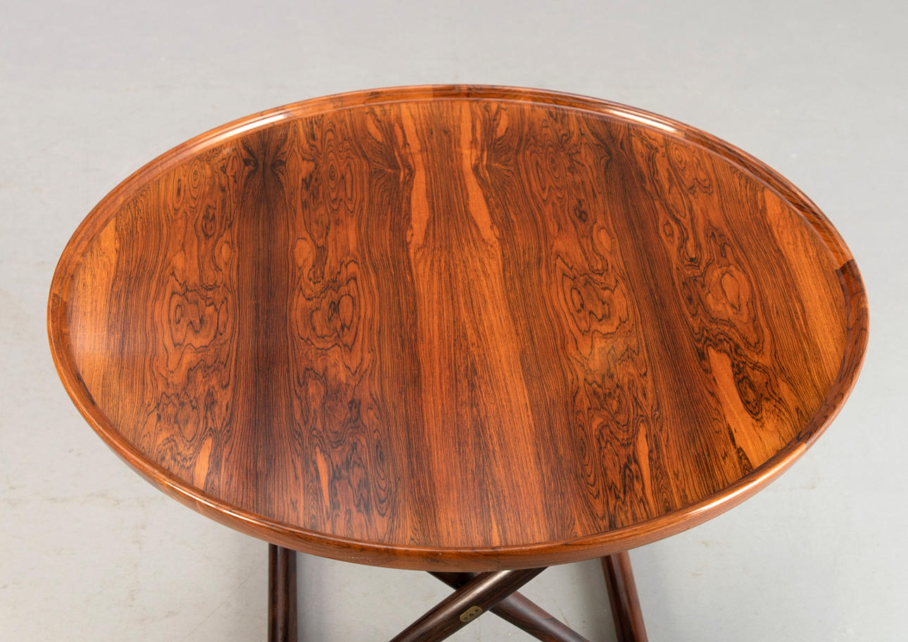 'Egyptian table' ML10097 table by Mogens Lassen. Design from the 1950s. Manufacturer probably Rud. Rasmussen. Round folding table in rosewood and brass details. The coffee table is easy to fold up and down.