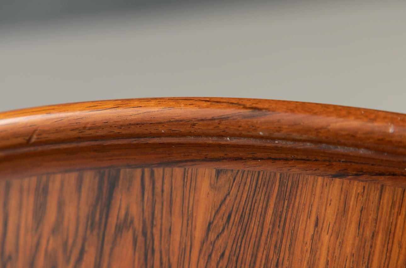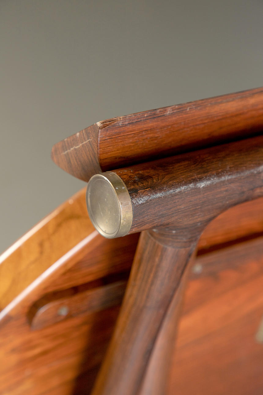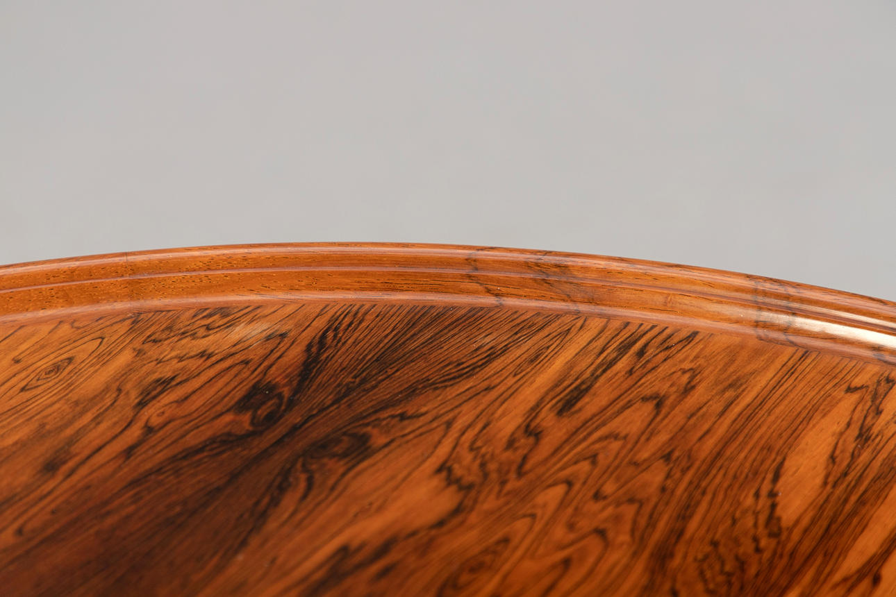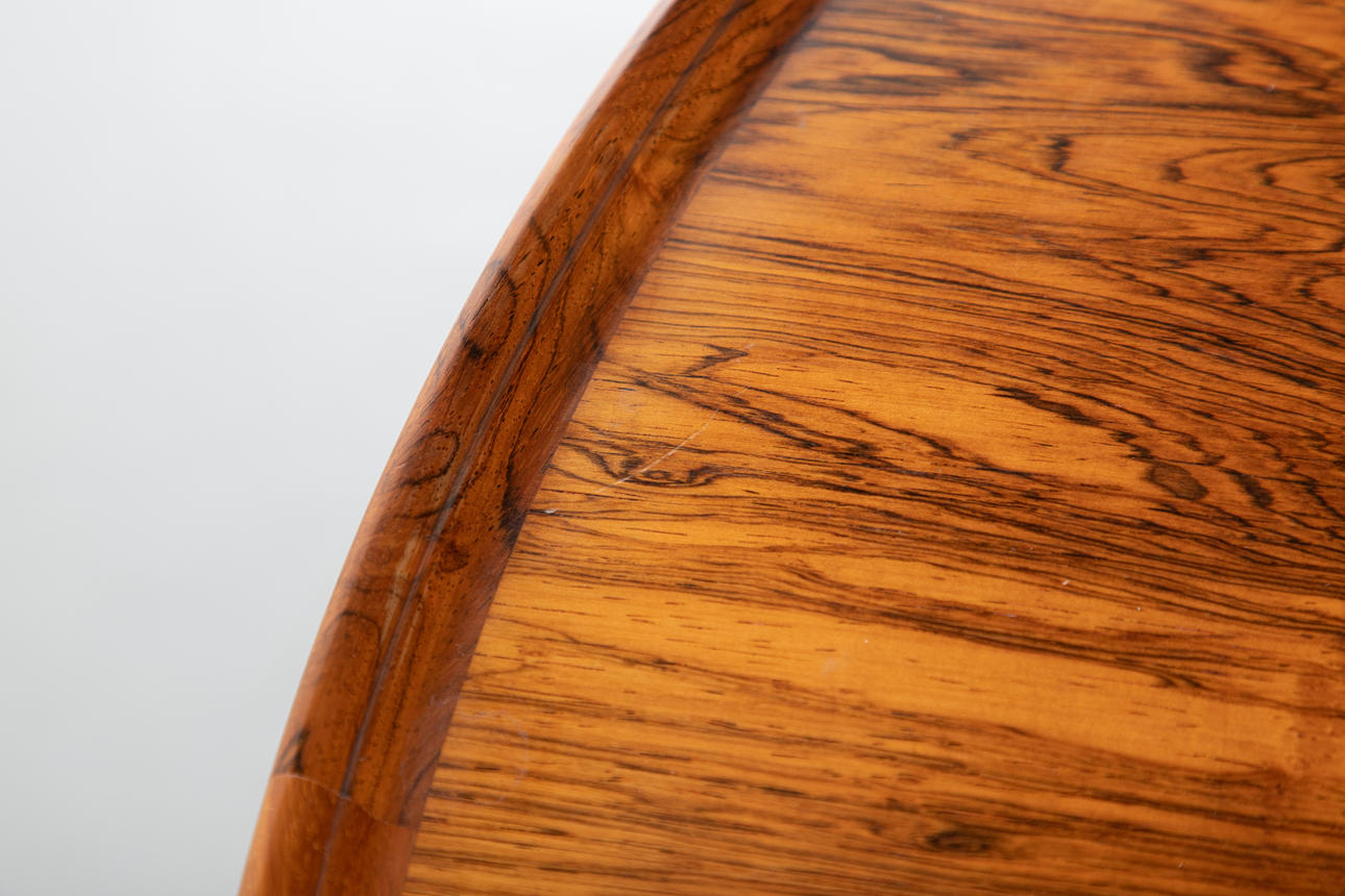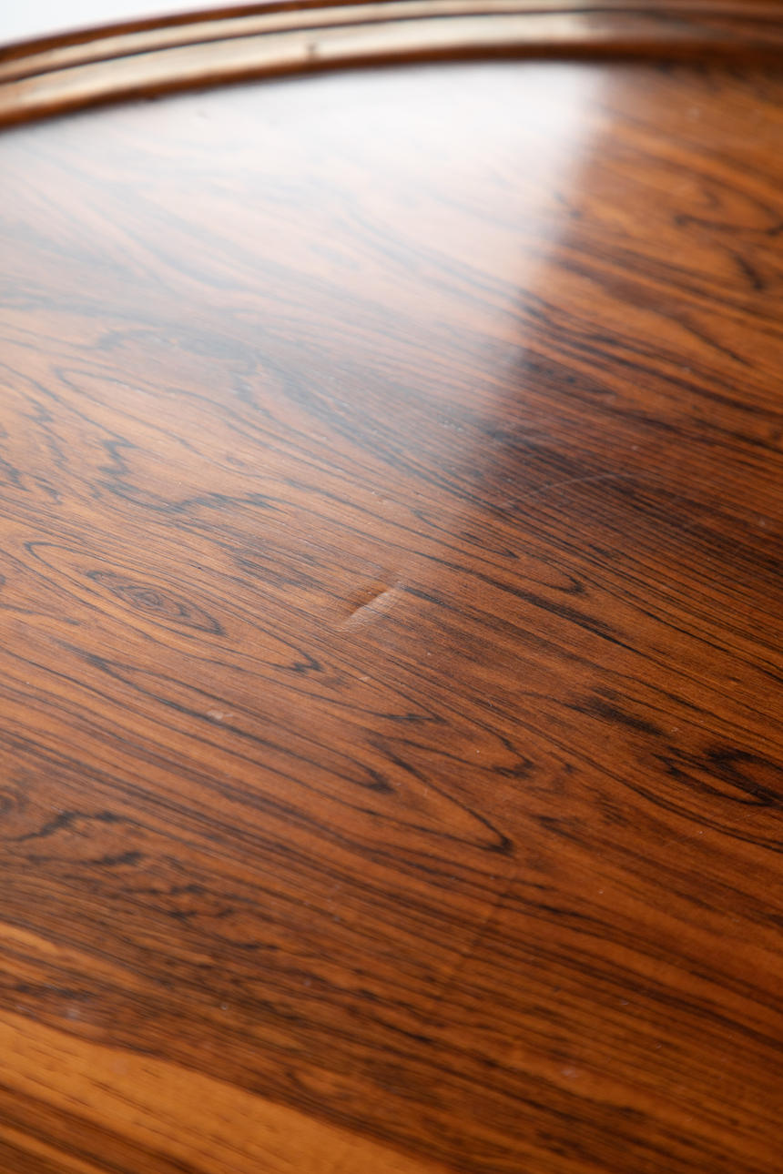 'Egyptian table' ML10097 table by Mogens Lassen. Design from the 1950s. Manufacturer probably Rud. Rasmussen. Round folding table in rosewood and brass details. The coffee table is easy to fold up and down.