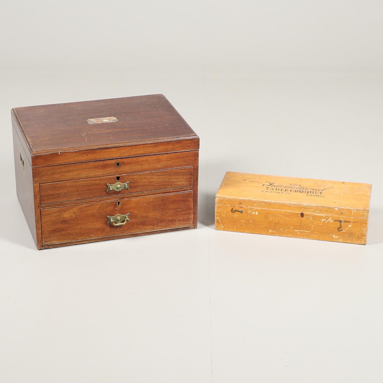 empty, height 28cm, width 45cm, depth 35cm, together with a table croquet set, F. H Ayres. Ltd, London.