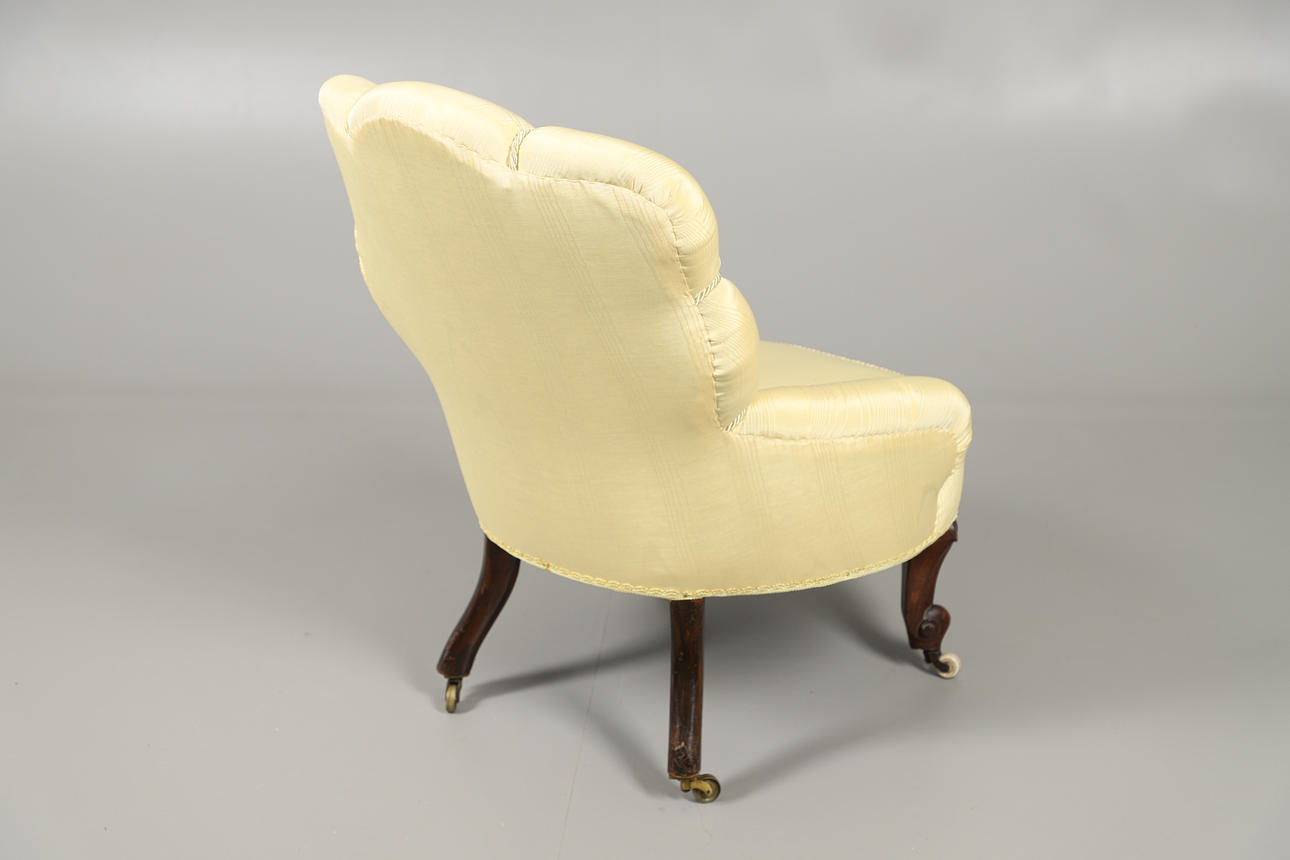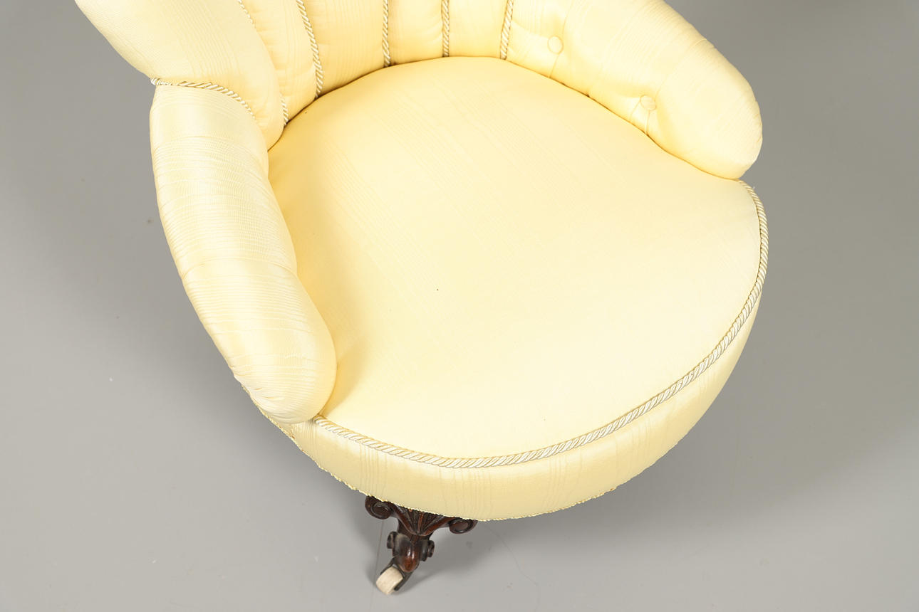 2547654. A VICTORIAN YELLOW SHELL BACK ARMCHAIR.