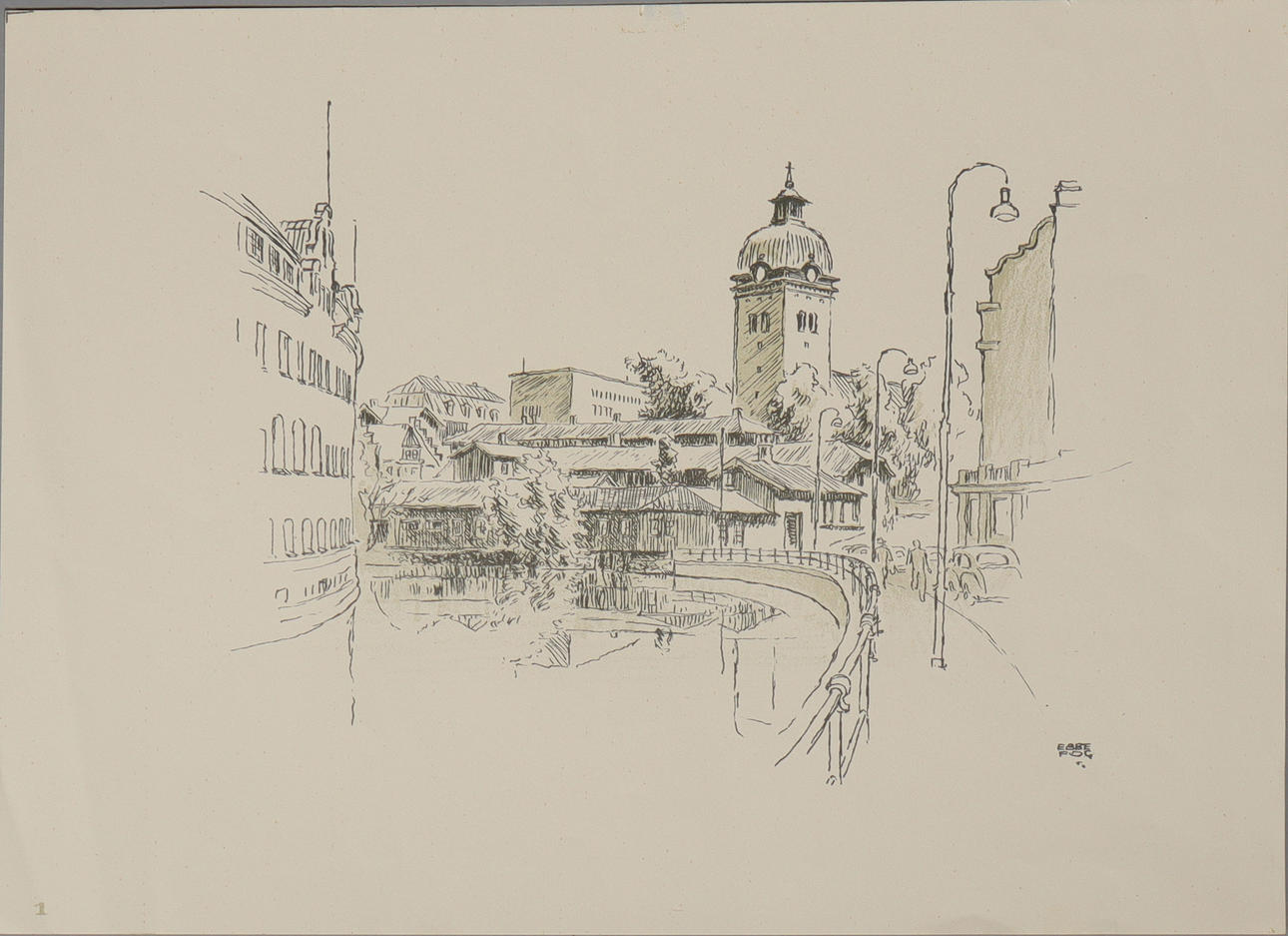 EBBE FOG. LITHOGRAPHS, 8 pcs, Borås images.