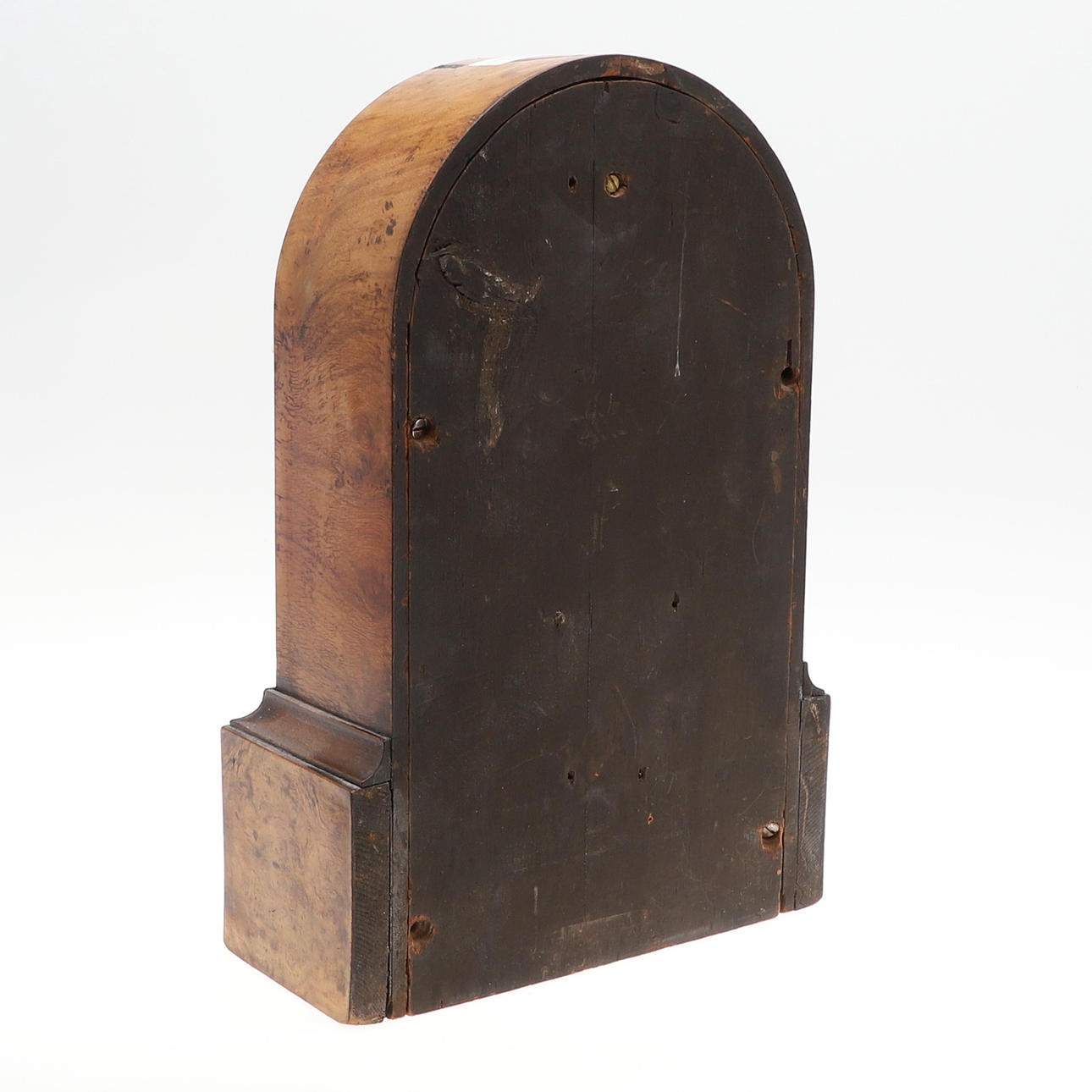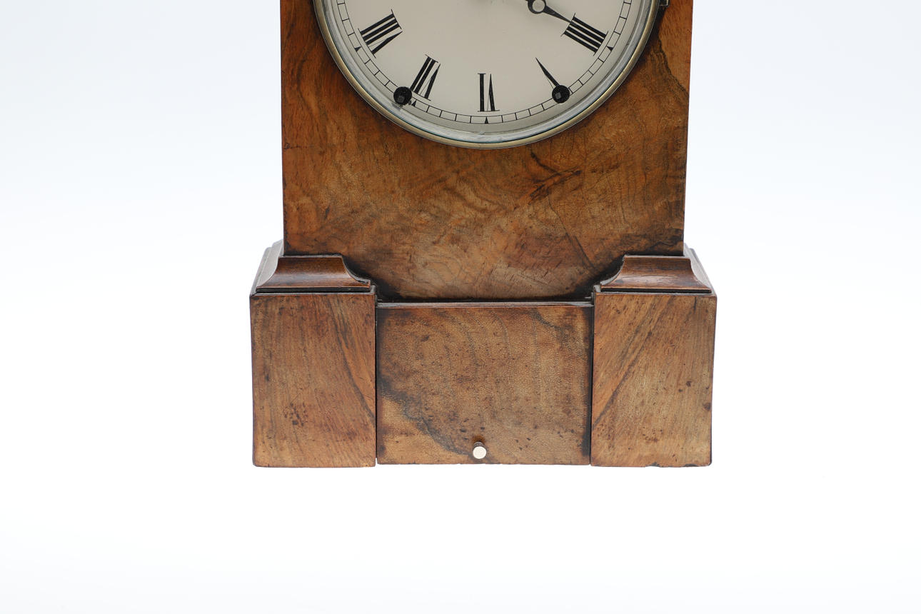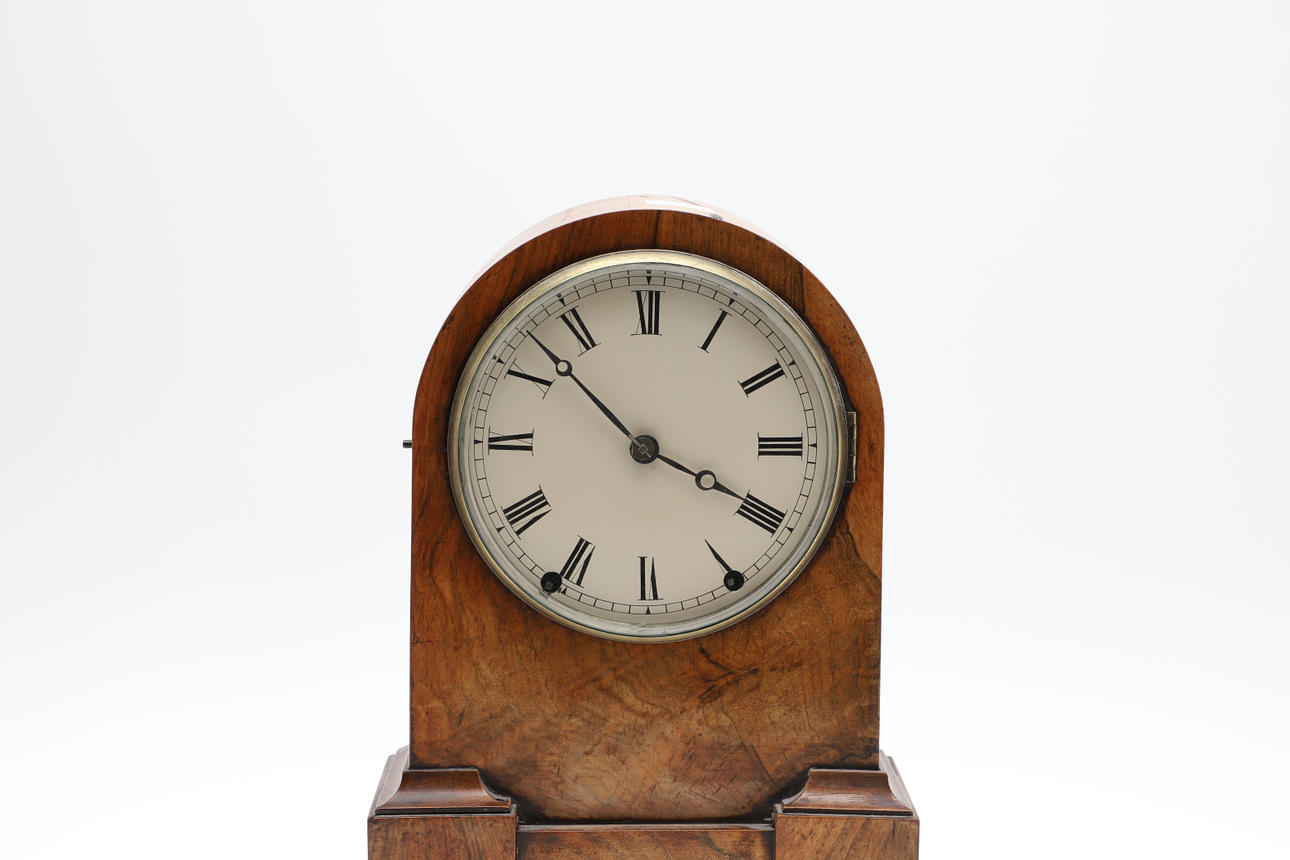A WALNUT MANTLE CLOCK.