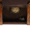 A Walnut mantle clock, with glazed brass frame door and printed face. Small compartment on the base. NO KEY. Height 37.5cm x Length 25cm x Depth 10cm.