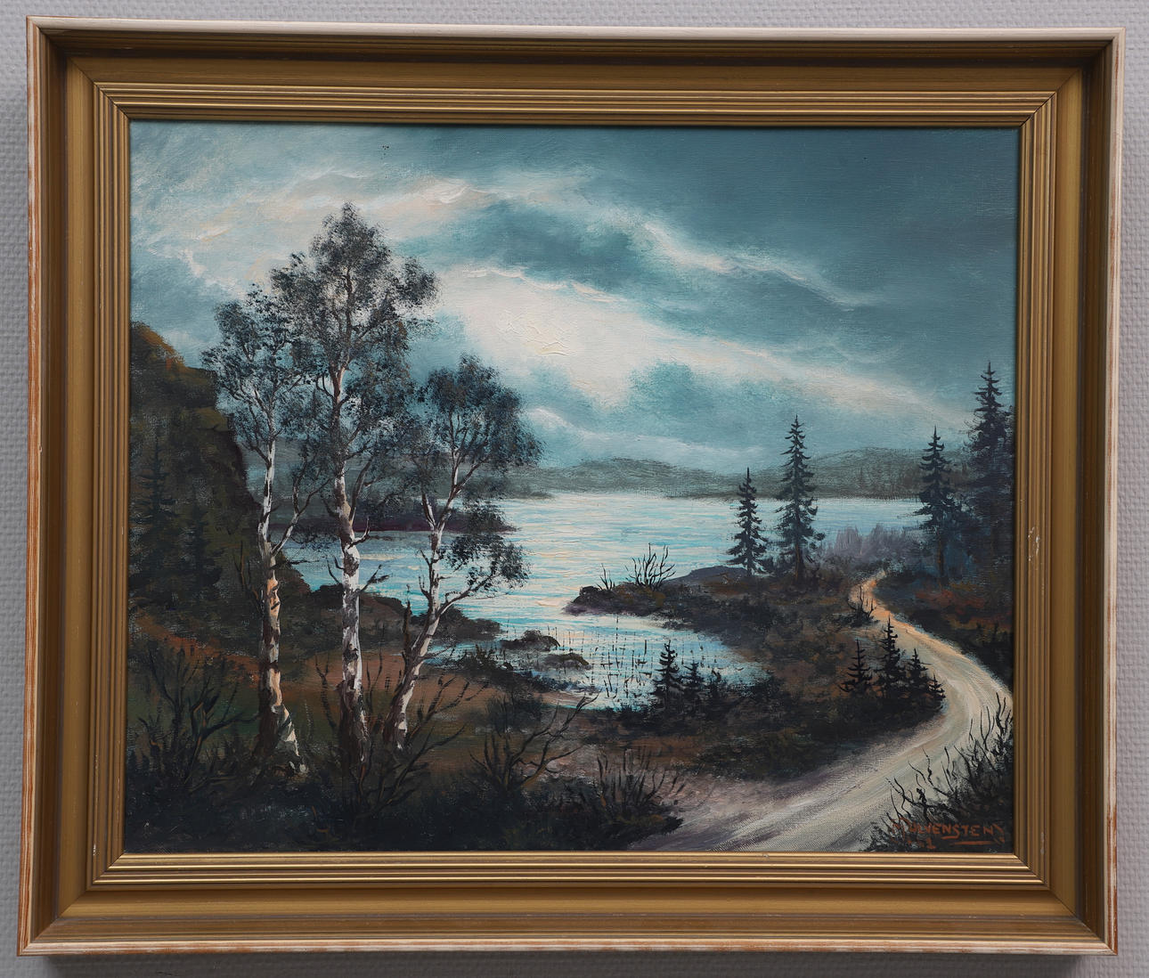 2556981. JACK ULVENSTEN. Oil on canvas, moonlight over lake, signed, dated -61.