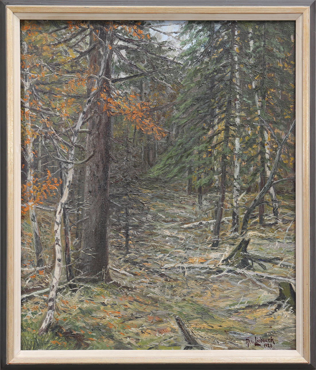 ALBERT LIEDBECK. Forest motif. Oil on canvas, signed and dated 1928.