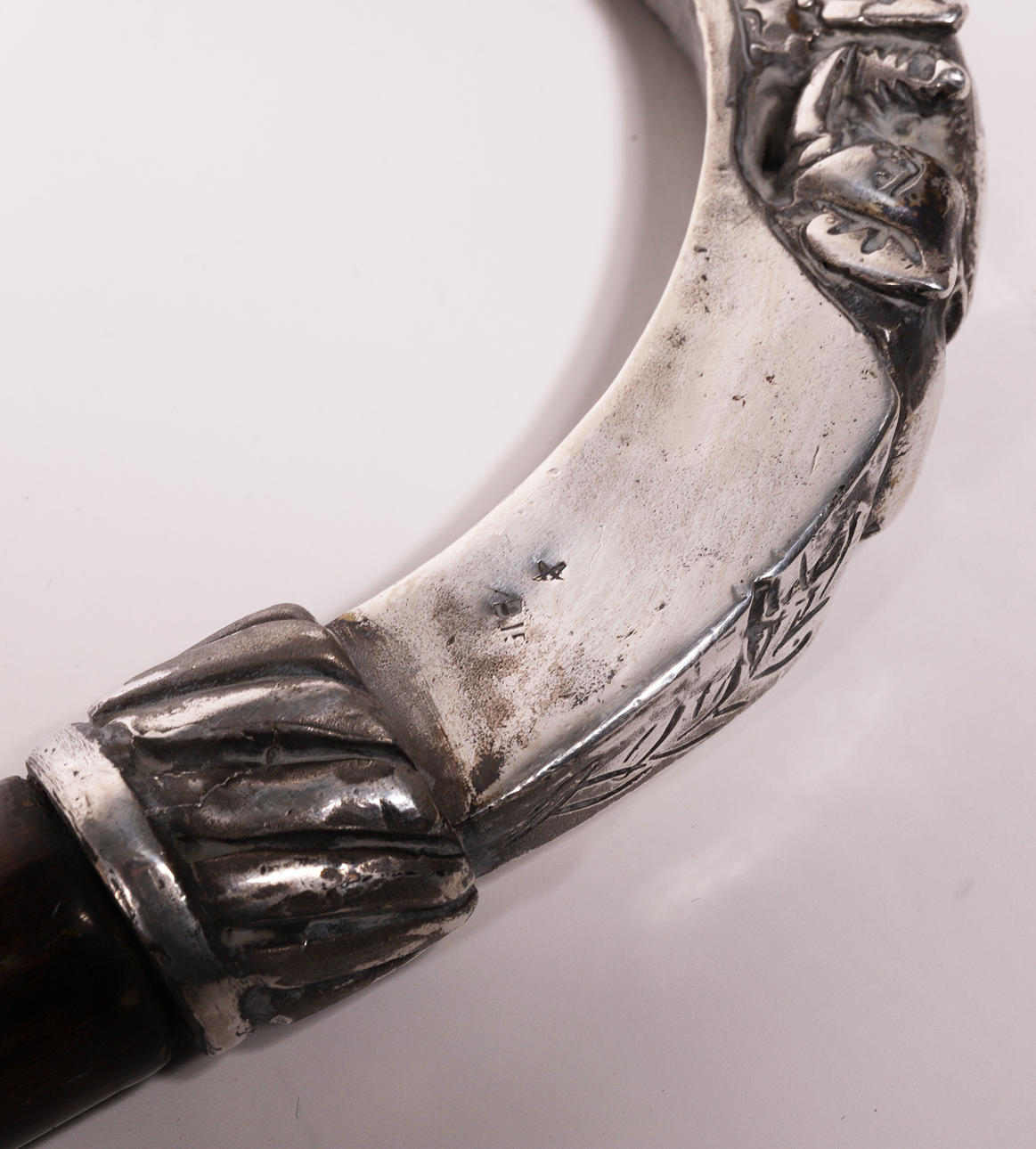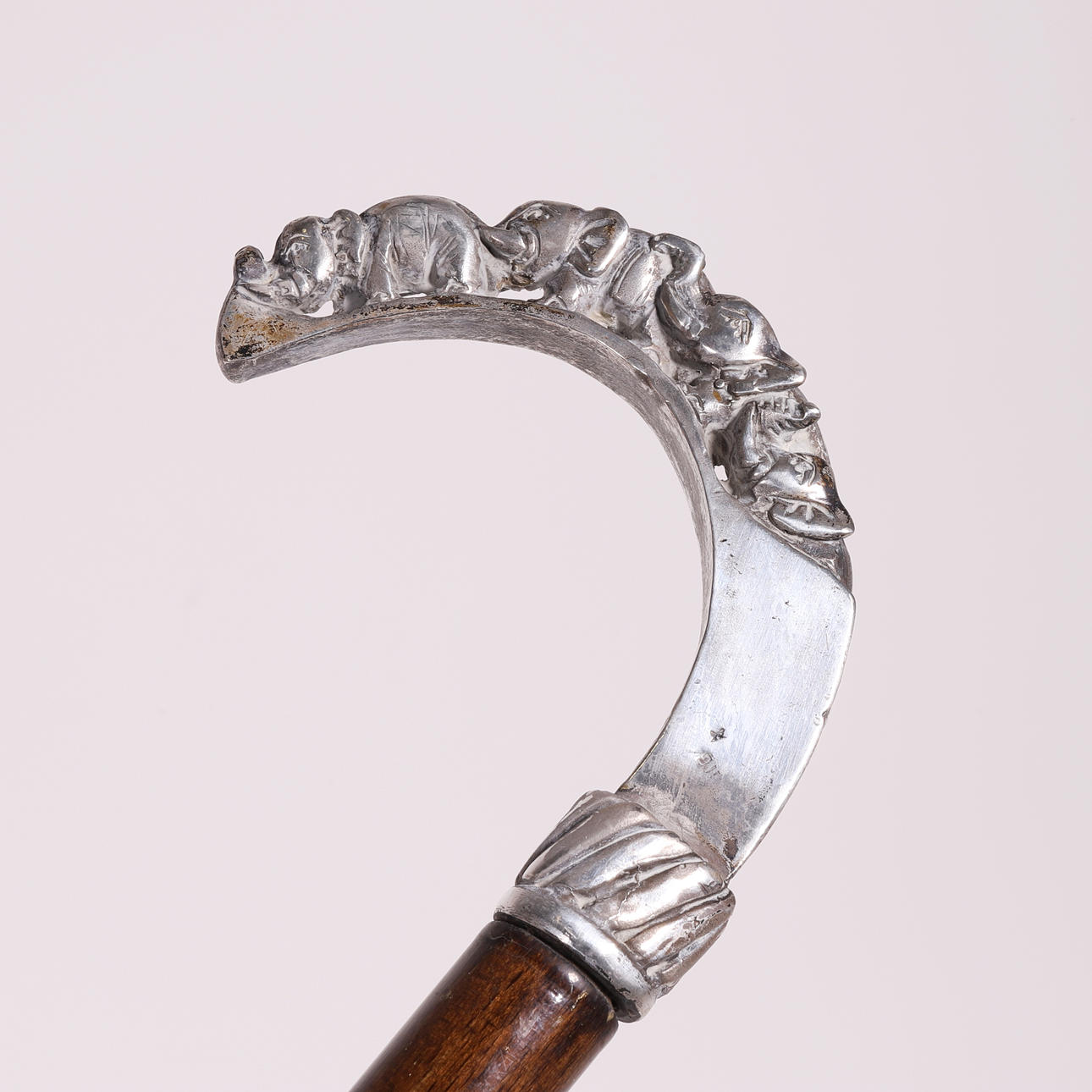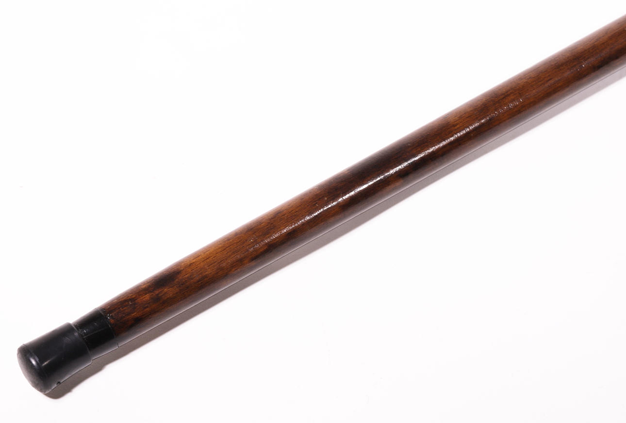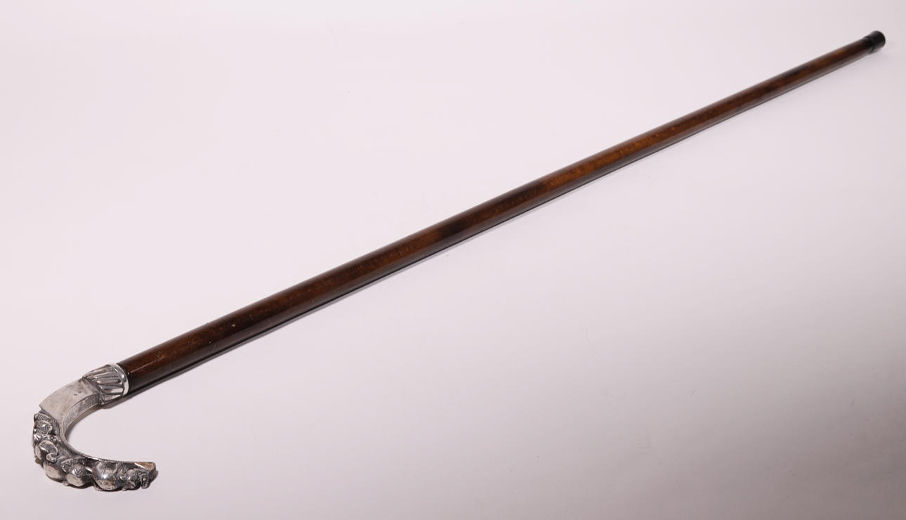 WOODEN CANE WITH SILVER HANDLE.