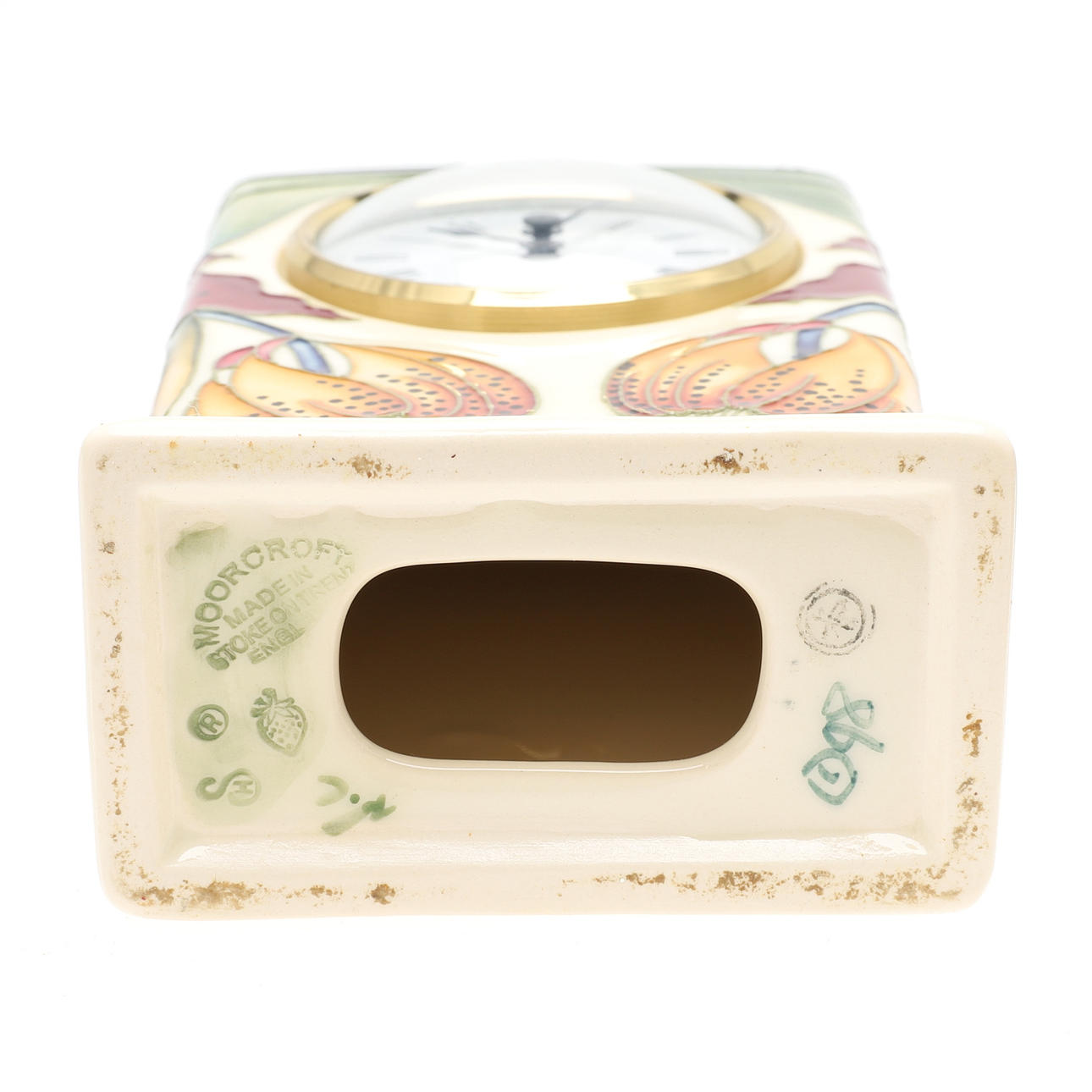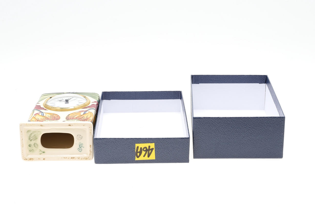 rectangular shape, with inset quartz movement, 16cm, impressed marks to base. boxed.