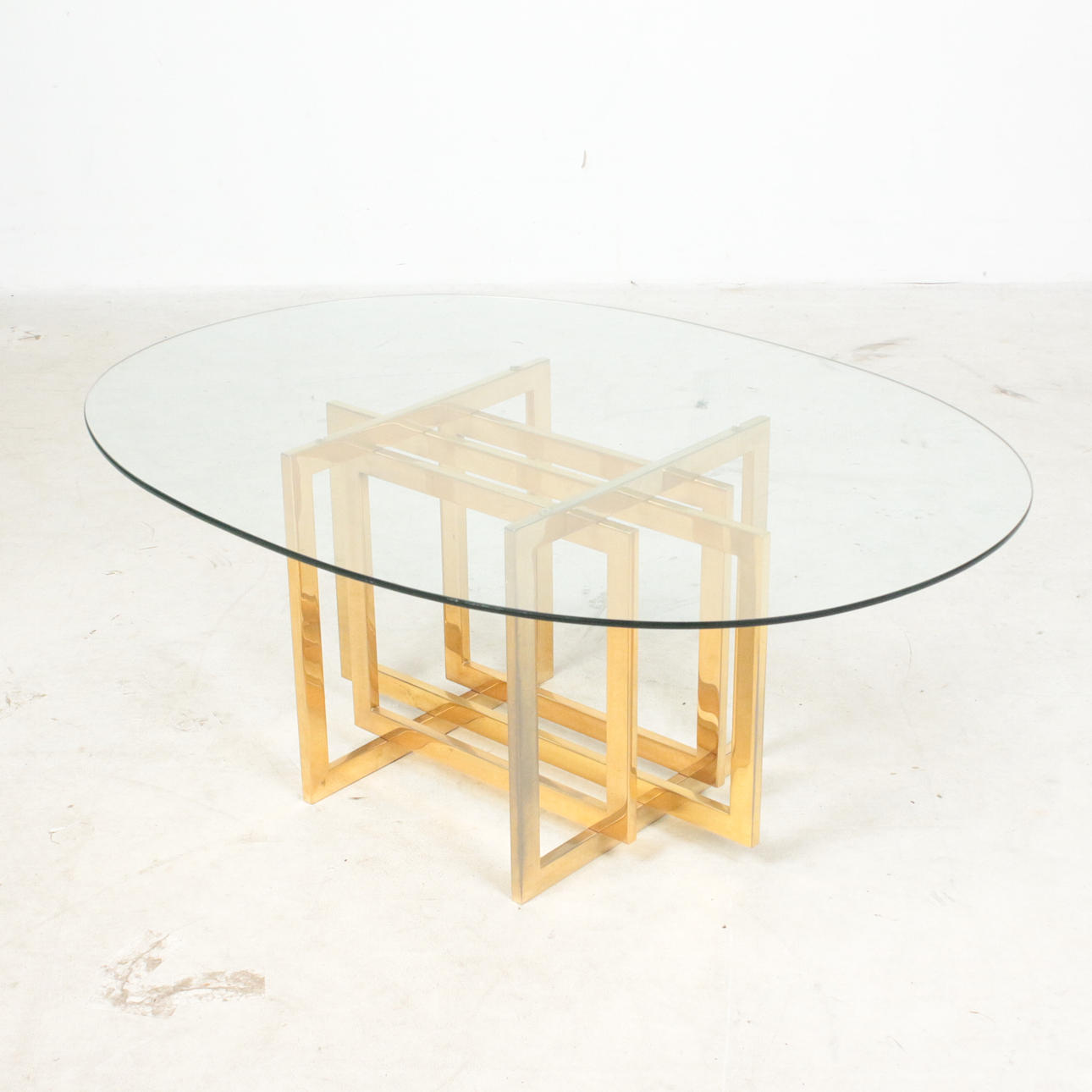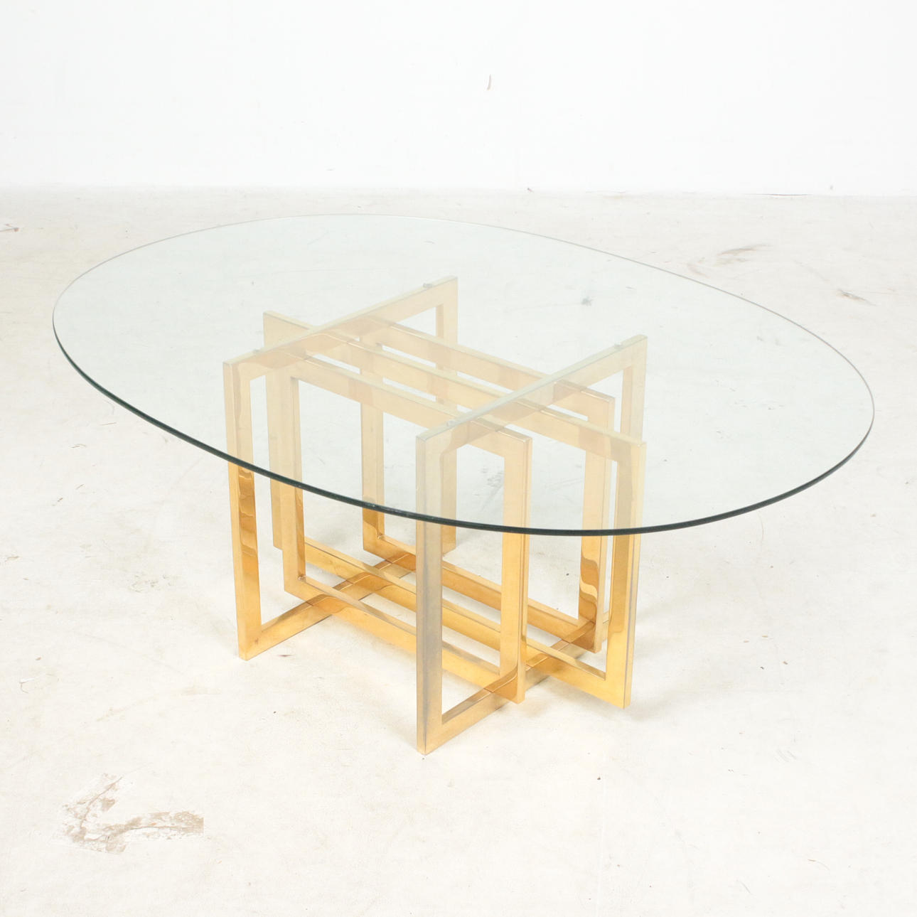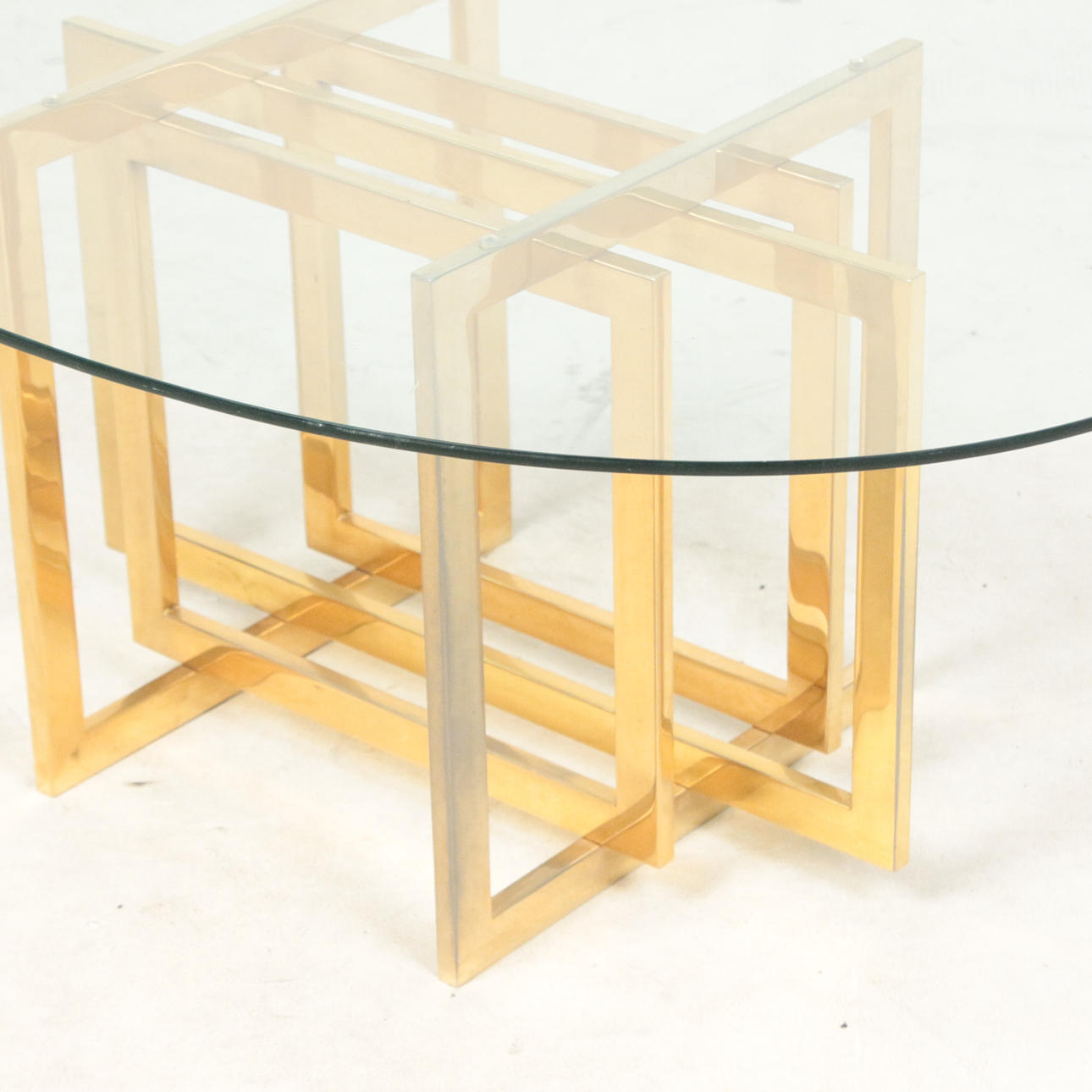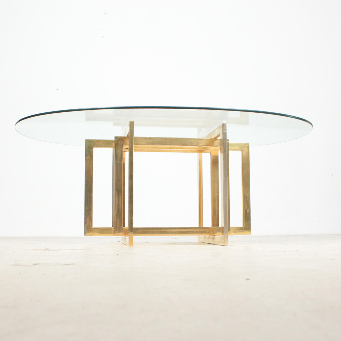 Pierre Cardin, coffee table / side table, 1970s, brass frame, loose glass plate, dimensions approx.: H. 42 cm, W. 106 cm, D. 77.5 cm.