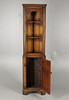 A REPRODUCTION CARVED OAK TWO PART CORNER CUPBOARD.