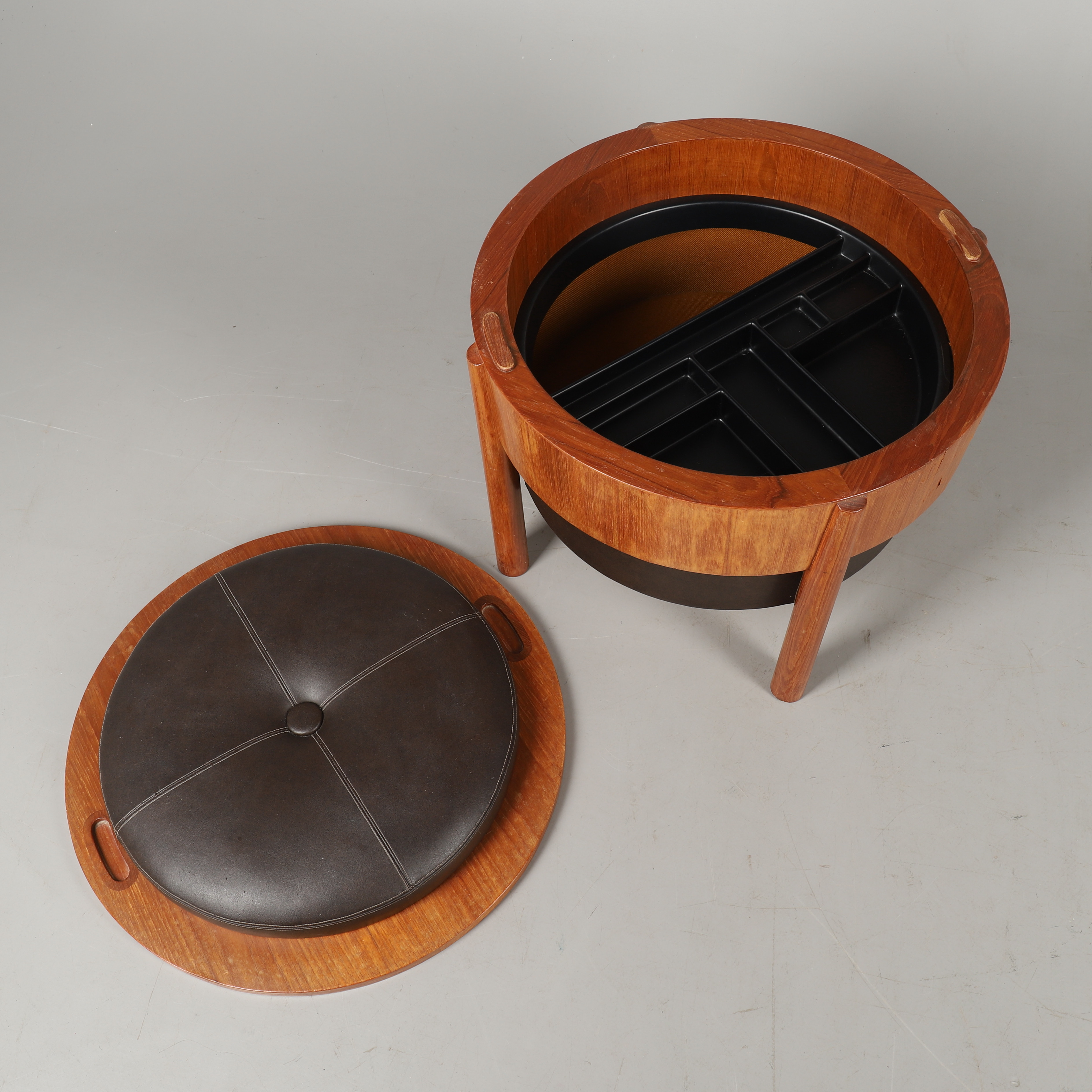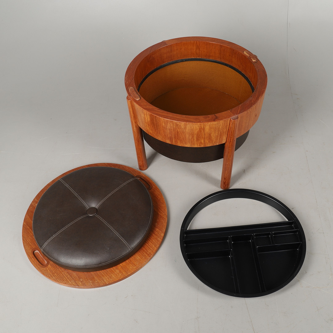 2560337. B.J HANSEN. A TEAK LIFT TOP CIRCULAR DRESSING STOOL.