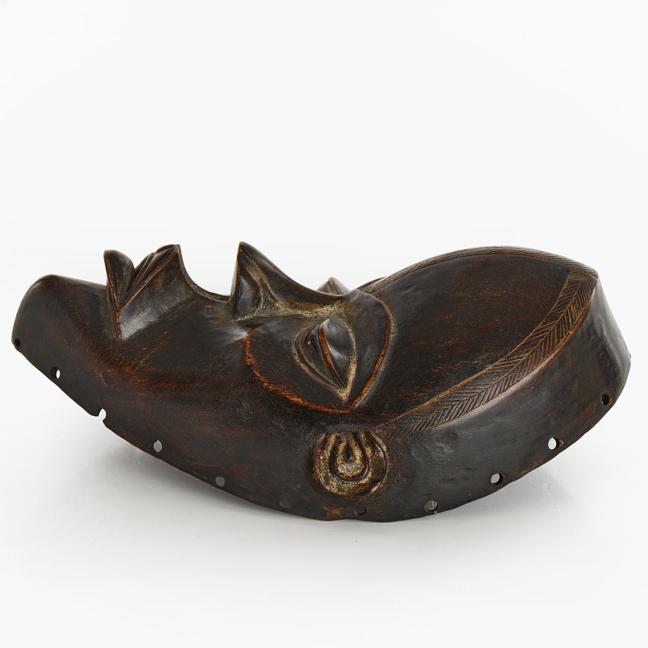 Deanglemask without eye cracks. Carved in hardwood. 20th century, Height 22,5cm.