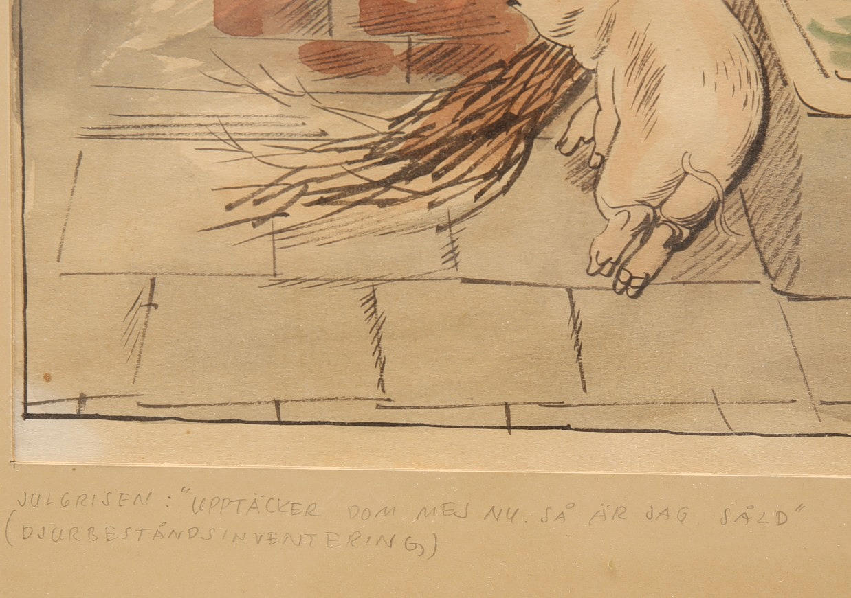 2567451. BIRGER LUNDQUIST. Watercolor, Christmas pig, signed Lindquist, dated -43.