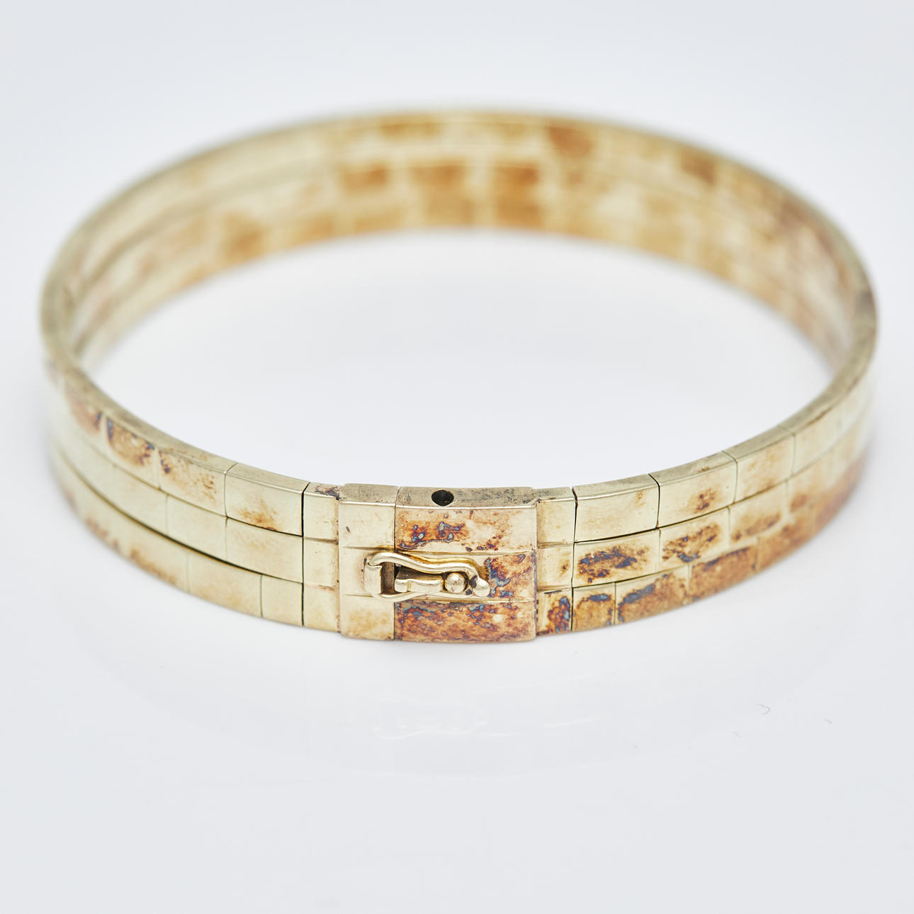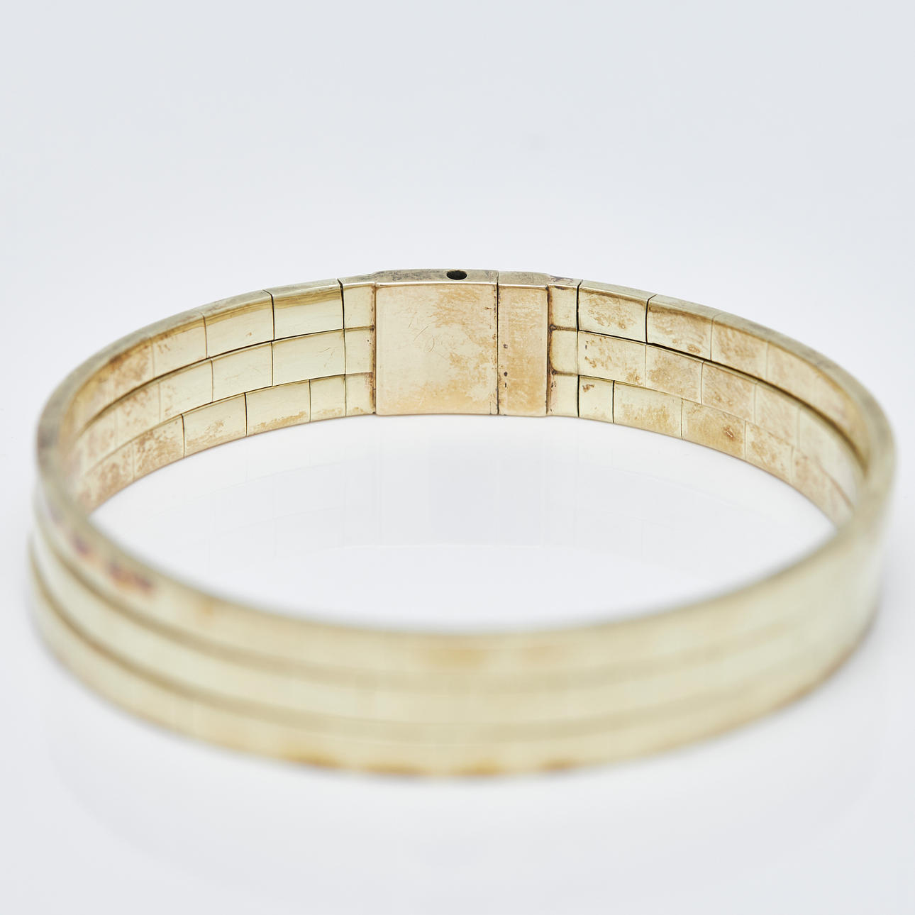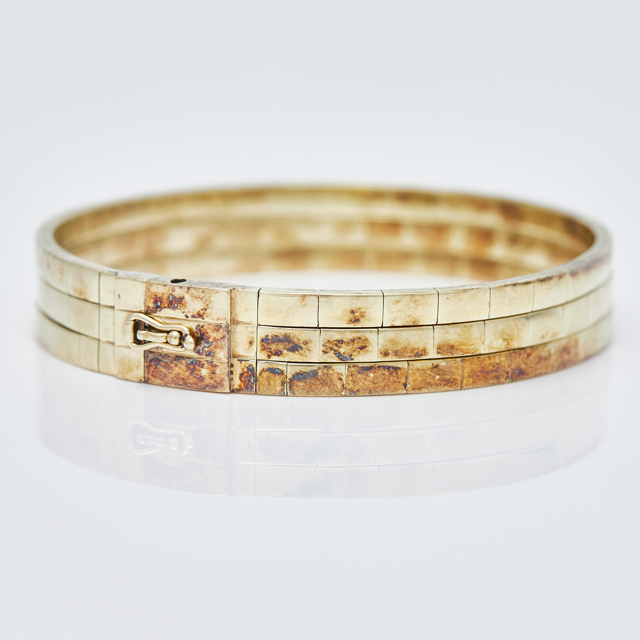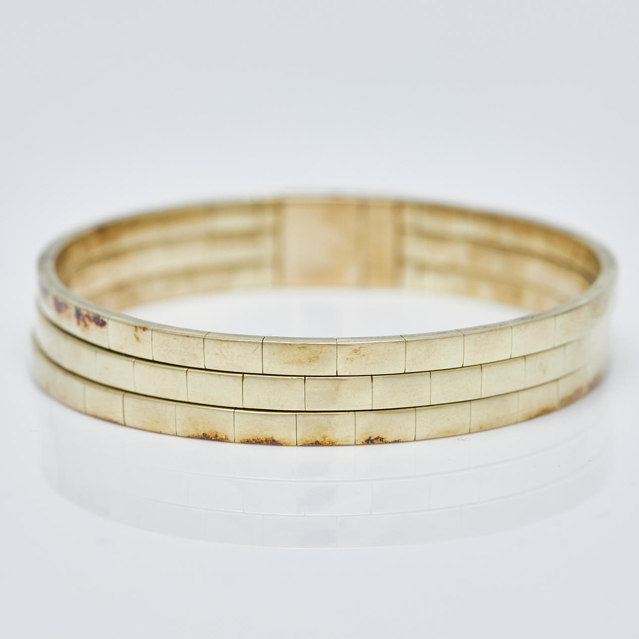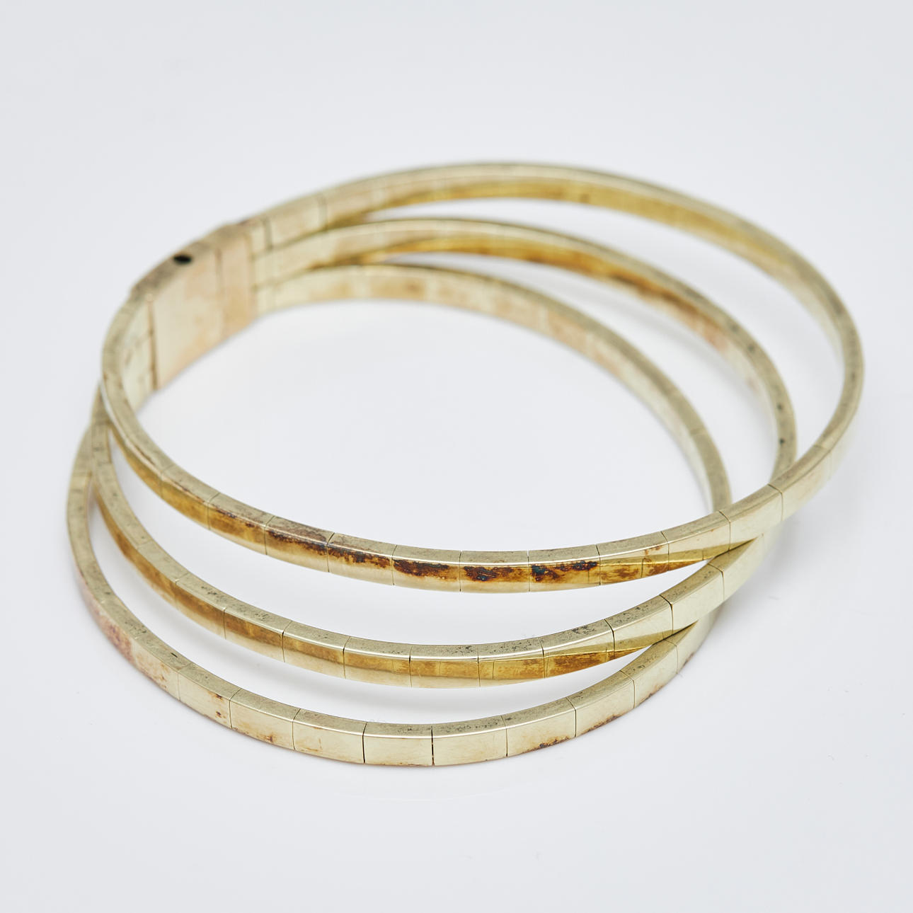 Three-row bangle with box clasp made of 585 yellow gold, hallmarked, alloy tested, L.17.5cm, weight: 36.25g.