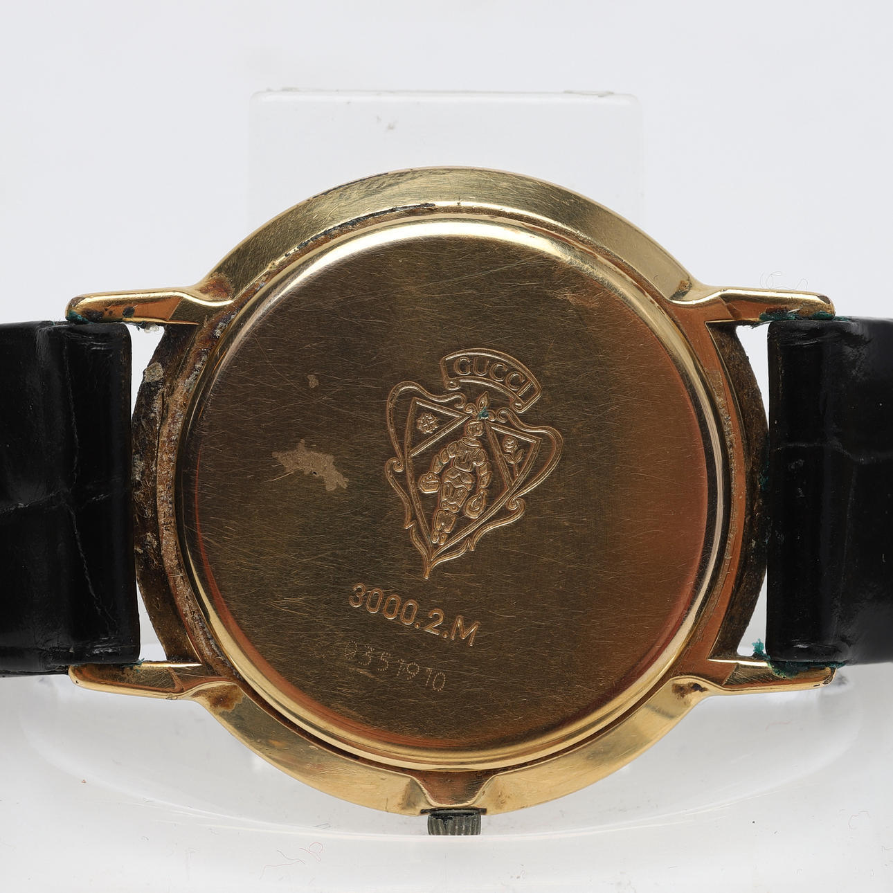 Bracelet replaced. Crown probably not original. Wear, scratches, dirt.