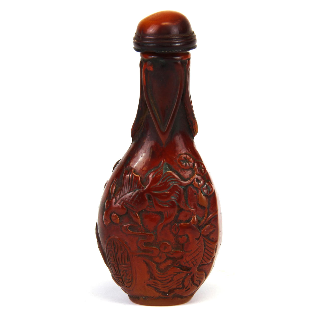 CHINESE RECONSTITUTED AMBER SNUFF BOTTLE.