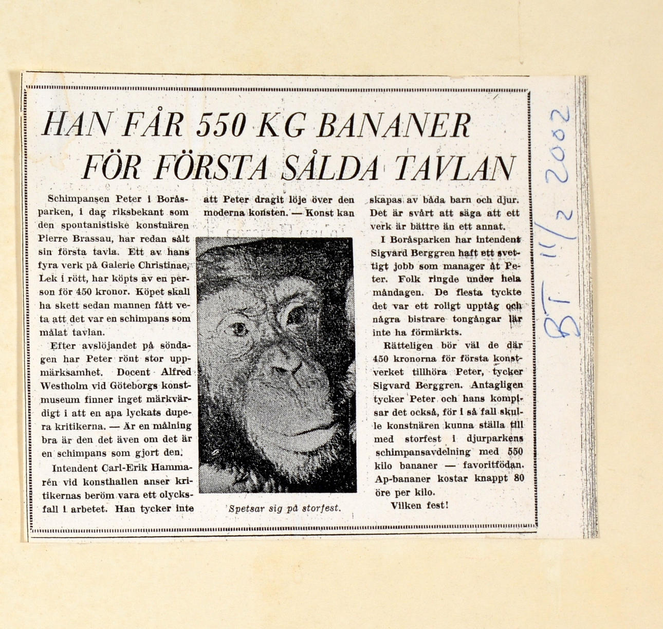Abstract composition, signed Artur Pansky and painted by the famous chimpanzee Peter from Borås Zoo. 46x55 cm comes with various glued-on clipboards.