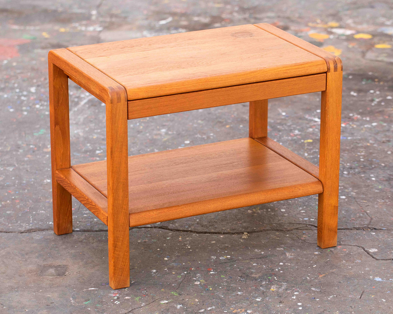 Side table from the 1960s/70s. Solid teak construction, equipped with a drawer. H. 49, B. 61, d. 40 cm. Labeled on the underside.