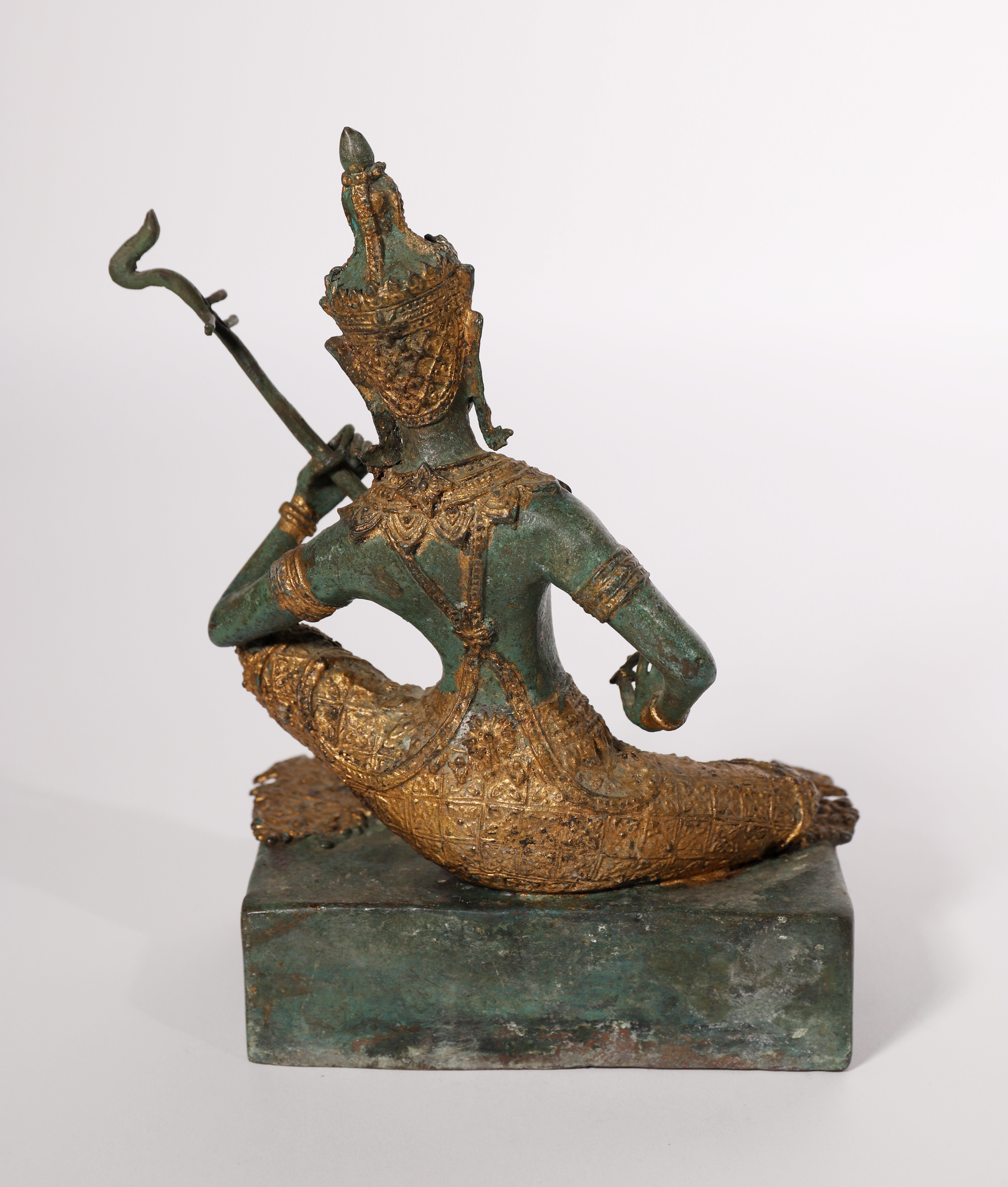2592108. SCULPTURE OF A BUDDHIST GODDESS PLAYING AN INSTRUMENT. PATINATED AND GOLDEN BRONZE.