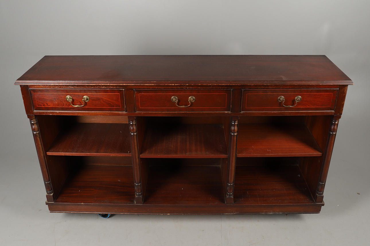 A REPRODUCTION MAHOGANY SIDEBOARD.