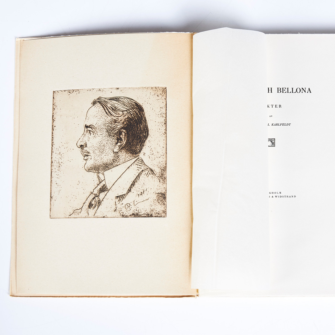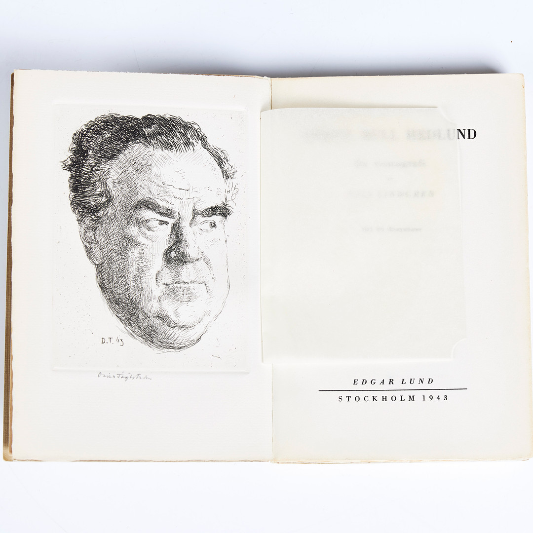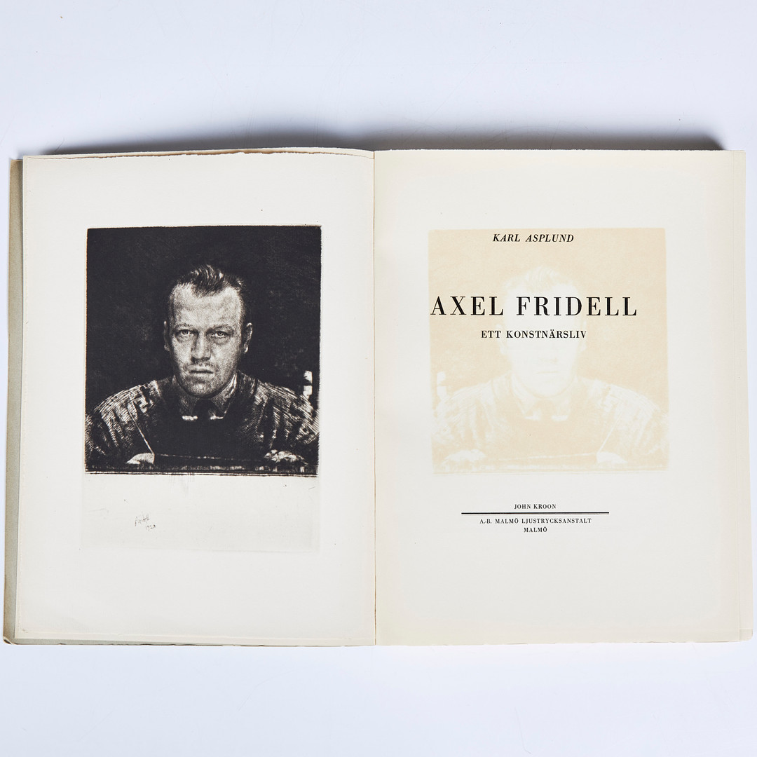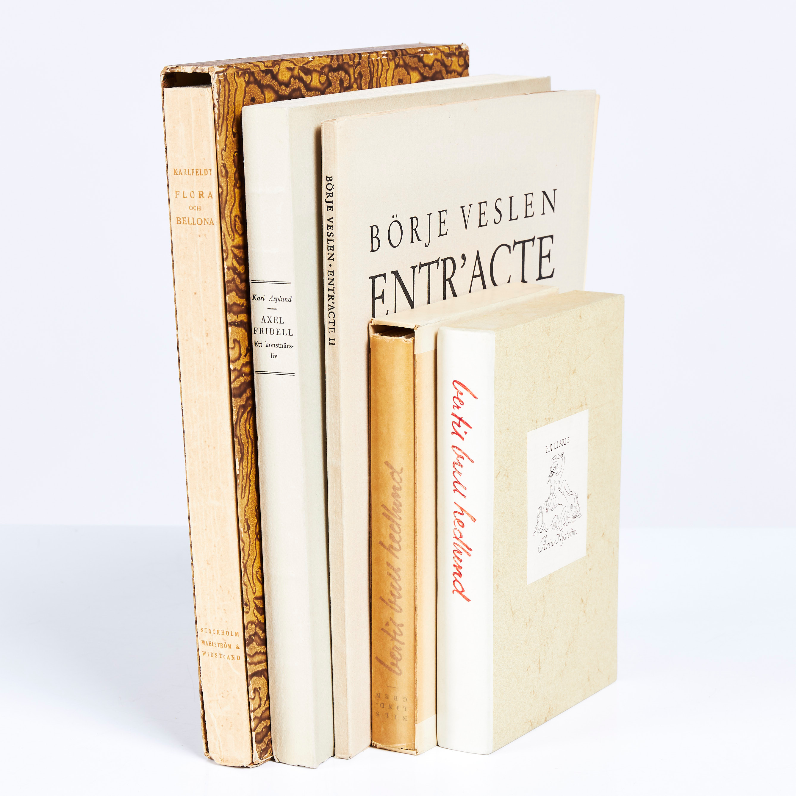 2594538. BOOKS, 5 pcs, Karl Asplund, "Axel Fridell", 1937, with an original etching by Axel Fridell, hft, Börje Veslen, "Entracte II", 1945, the book printed in 200 numbered copies of which this is 143, with 24 signed original lithographs by the author.