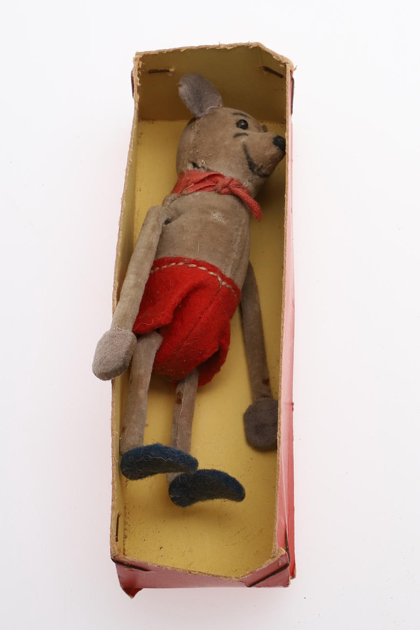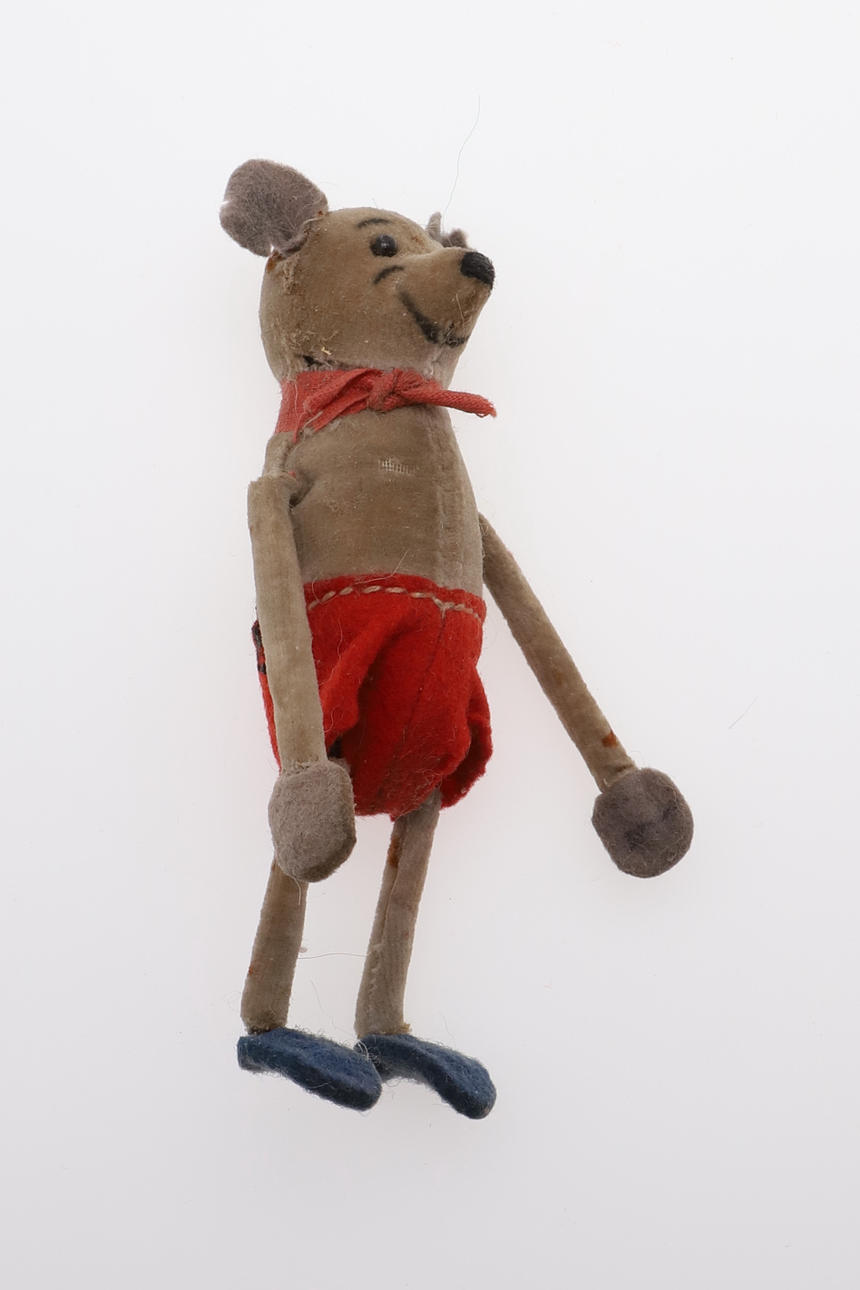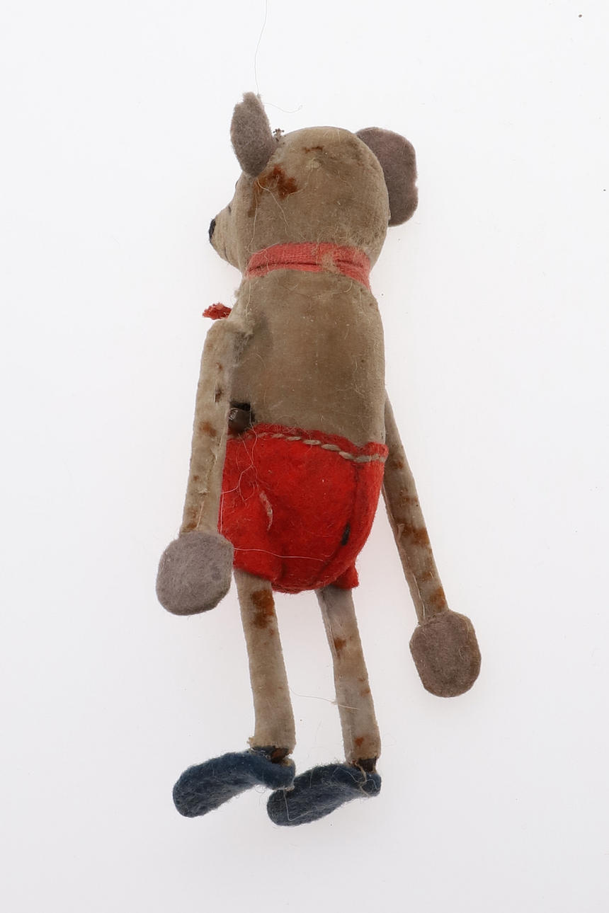 A Schuco patent clockwork Mouse, the figure holding a tankard between it's hands, stamped on the metal legs 'Schuco Patent' (10.5cms high). Also with another clockwork Mouse, the figure with arms that revolve around, unmarked but probably by Schuco as well. (10.5cms high). (2).