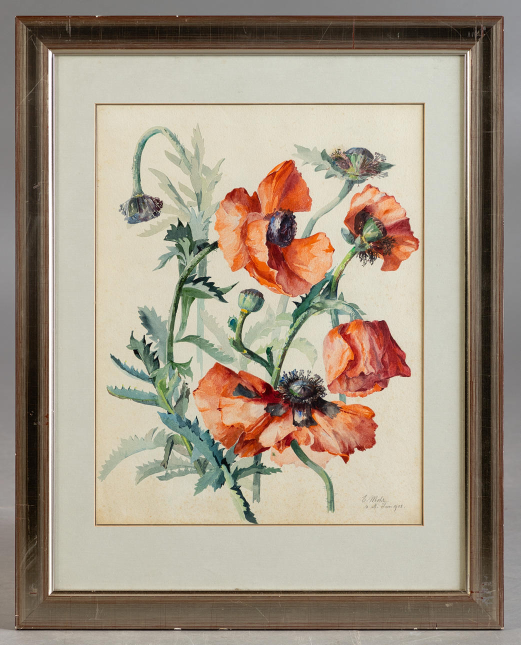 Emma Mohr (1877-1967), poppies, watercolor on handmade paper, 1902, signed and dated lower right, approx. 50 x 39 cm (passe-partout section), framed behind passe-partout and glass, with frame approx. 72.5x57.5cm.