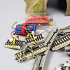 A Collection with track parts as well as two transformers and some houses.