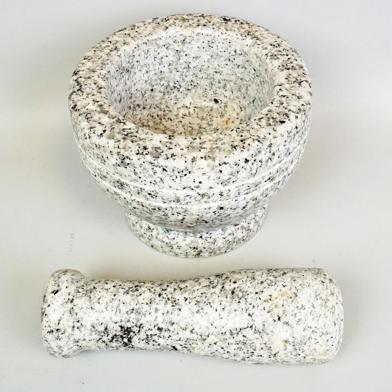 Normal wear and tear, a Chips on the foot of the mortar, stains, scratches.