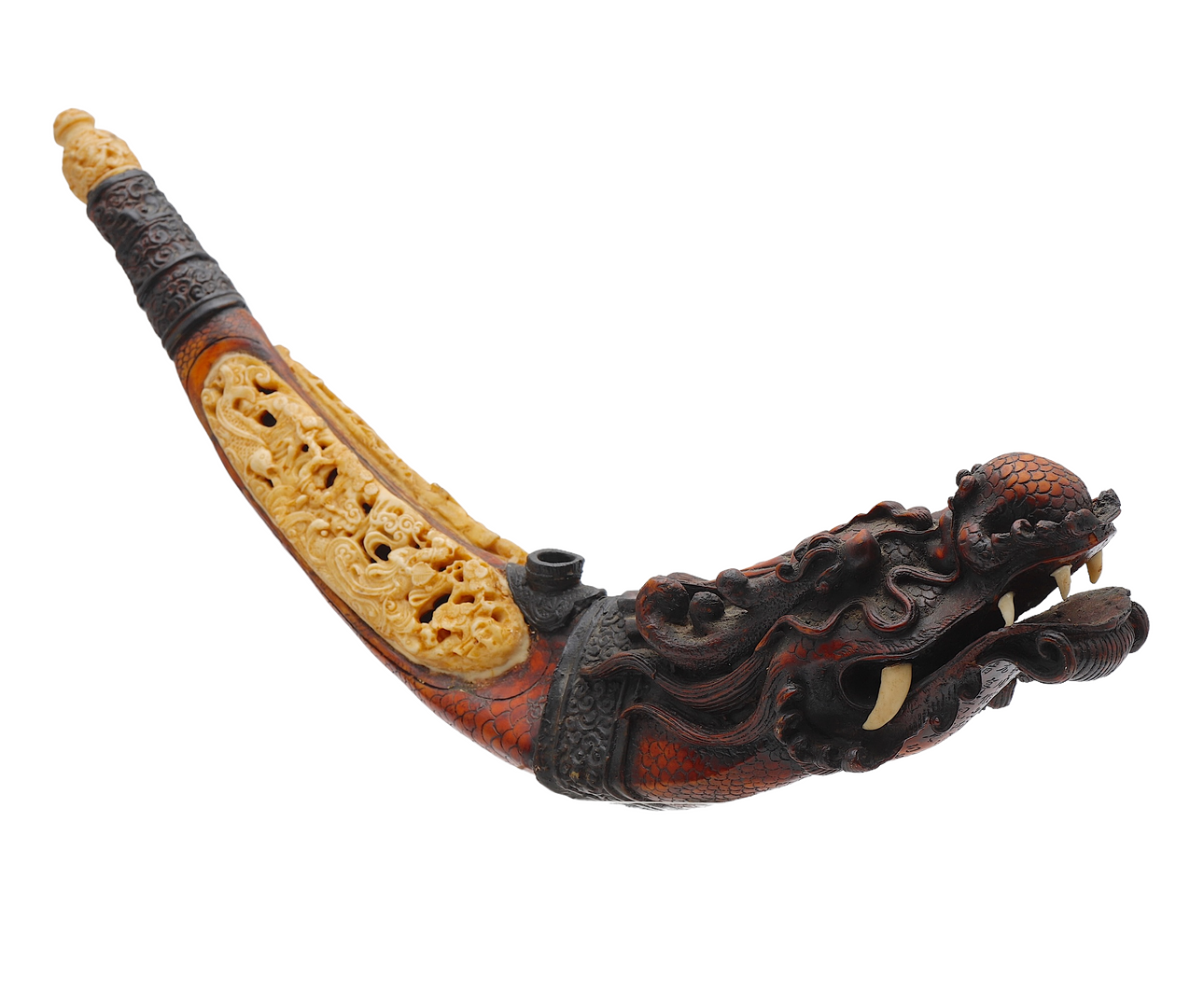 Chinese old style opium pipe in patinated resin.