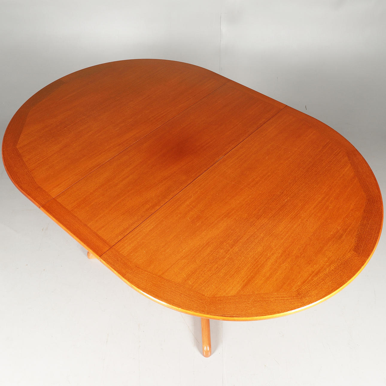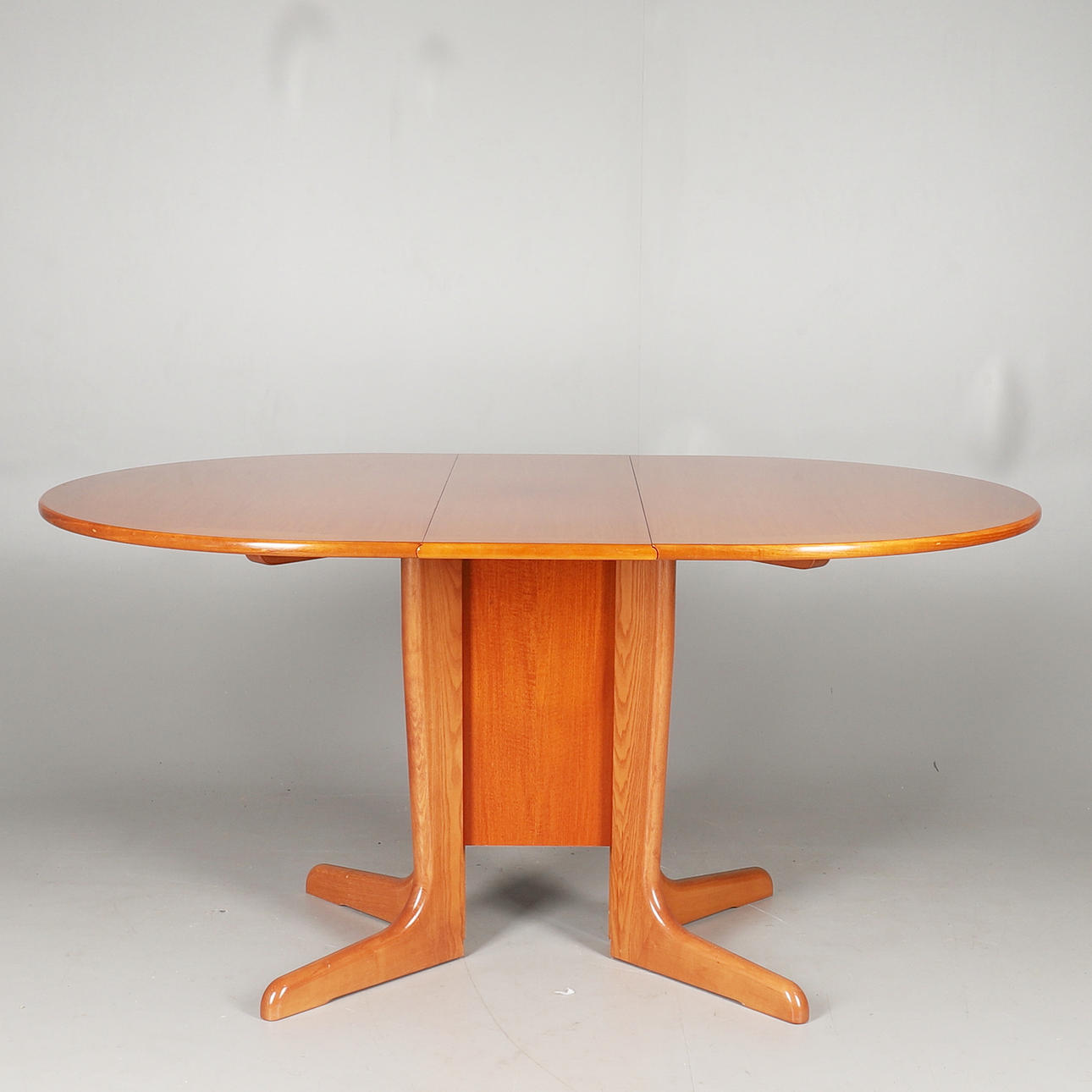A G-PLAN TEAK DROP LEAF DINING TABLE.