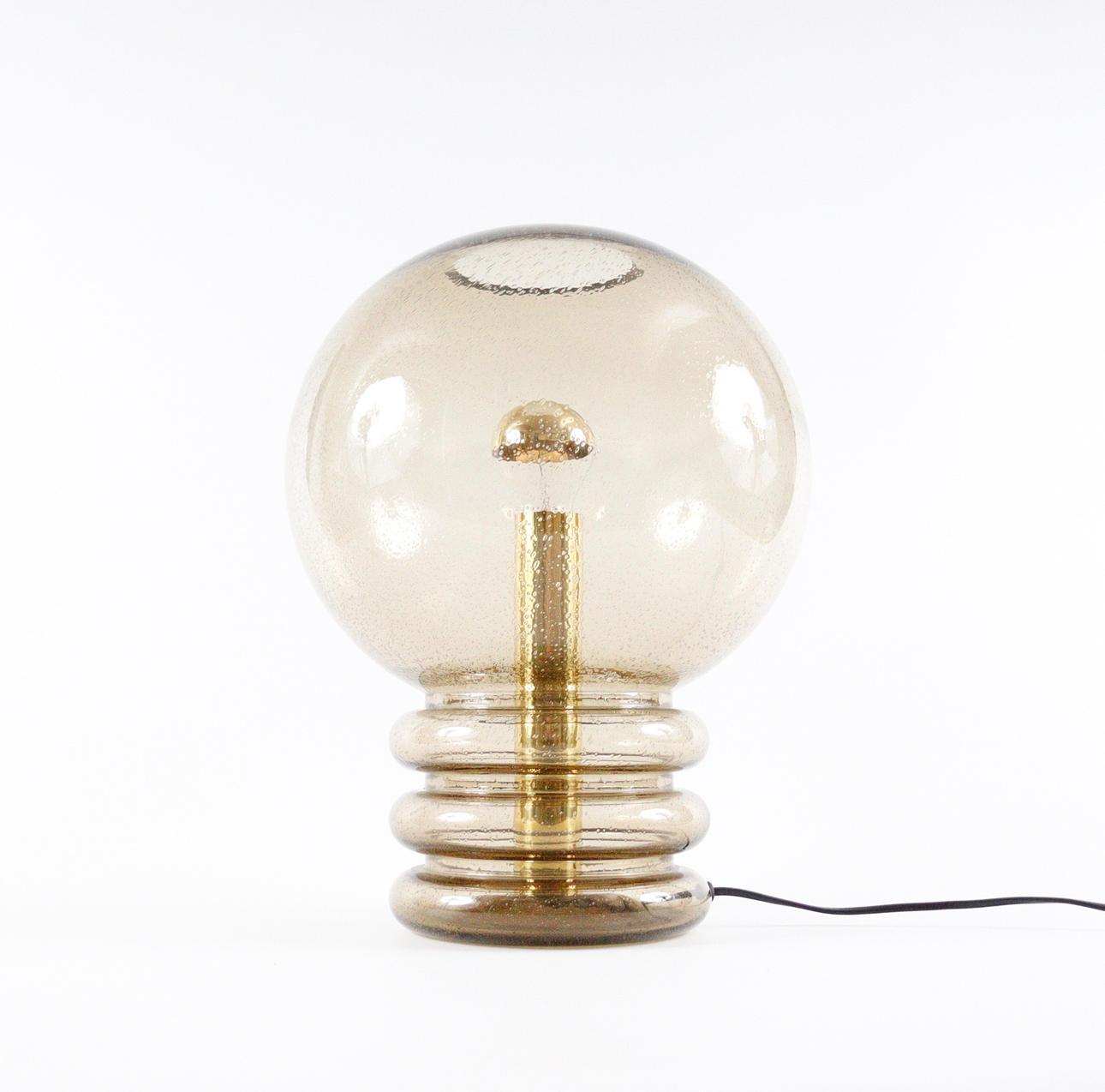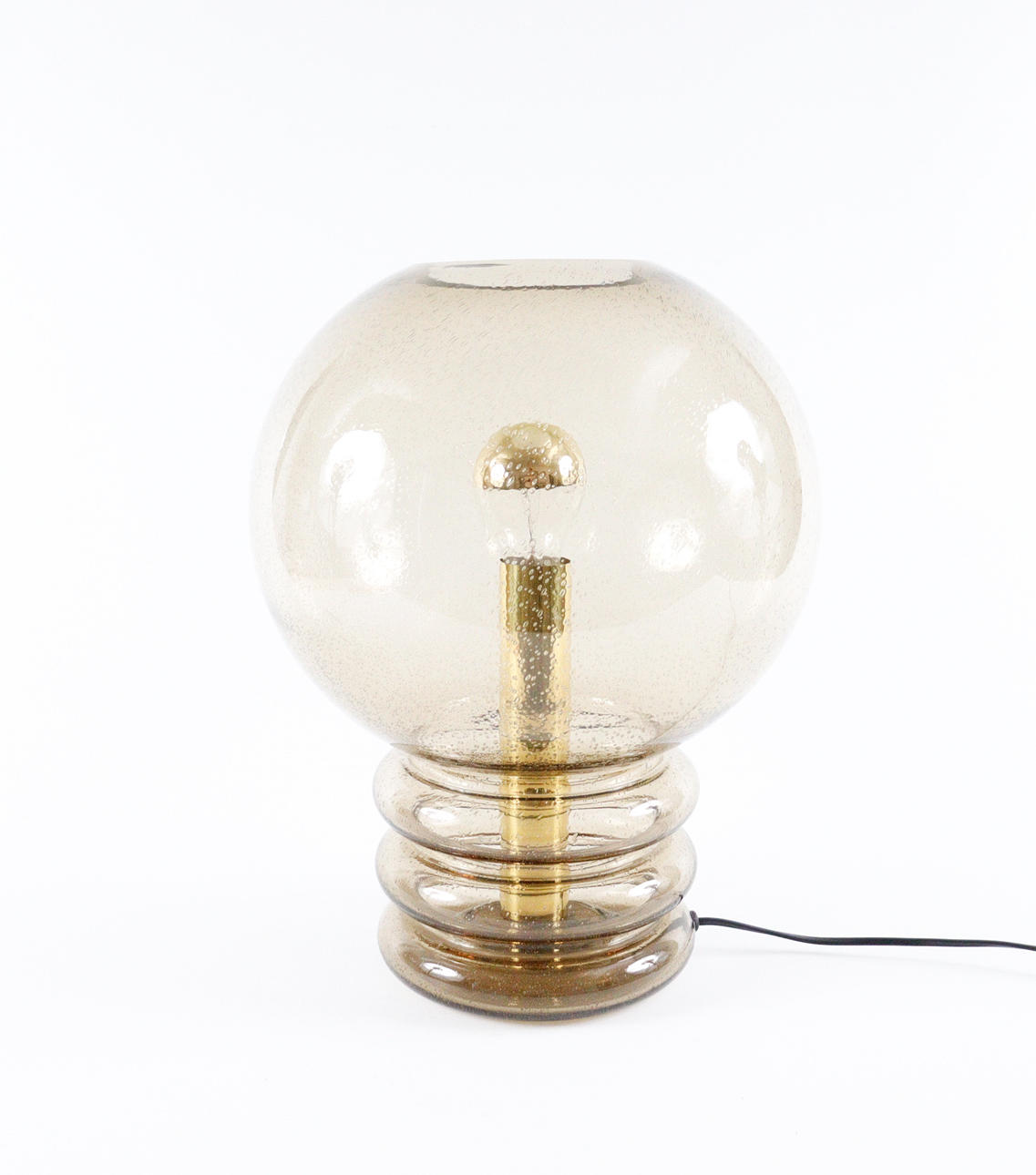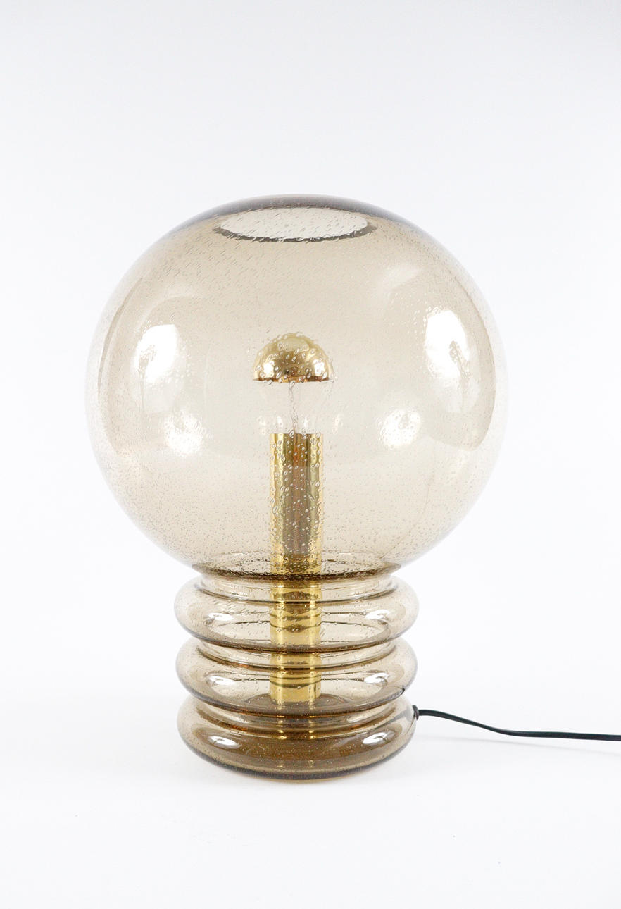Table lamp by Glashütte Limburg, 1970s, made of hand-blown smoked glass, one light available, dimensions approx.: H. 46cm, Ø. 36cm.