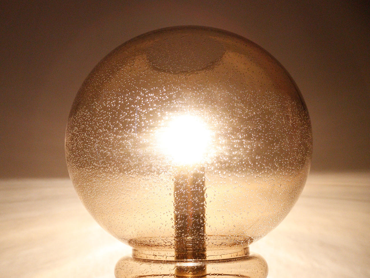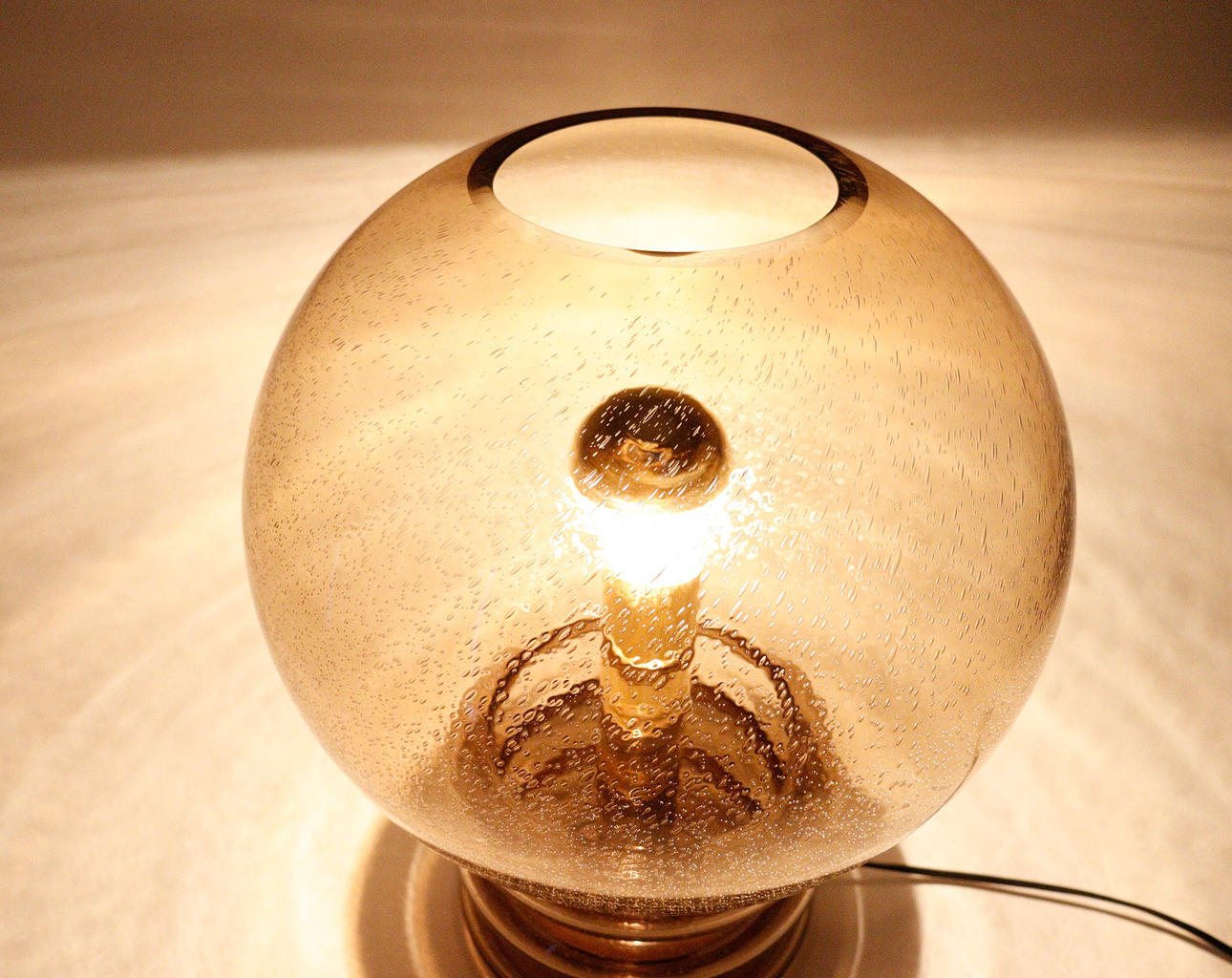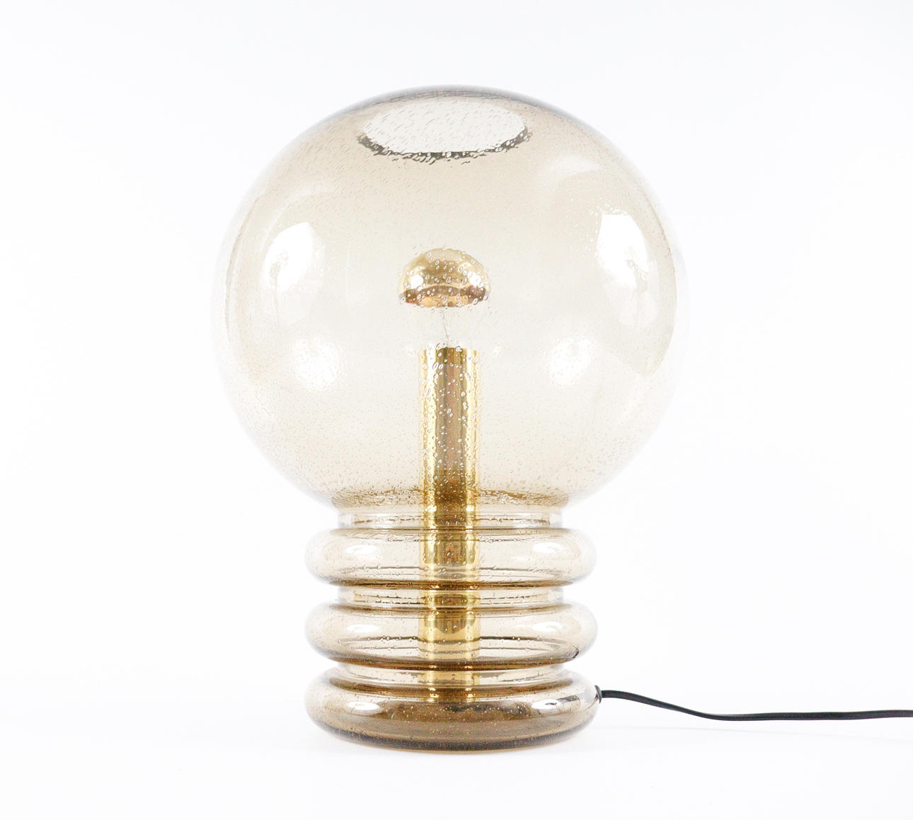 Table lamp by Glashütte Limburg, 1970s, made of hand-blown smoked glass, one light available, dimensions approx.: H. 46cm, Ø. 36cm.