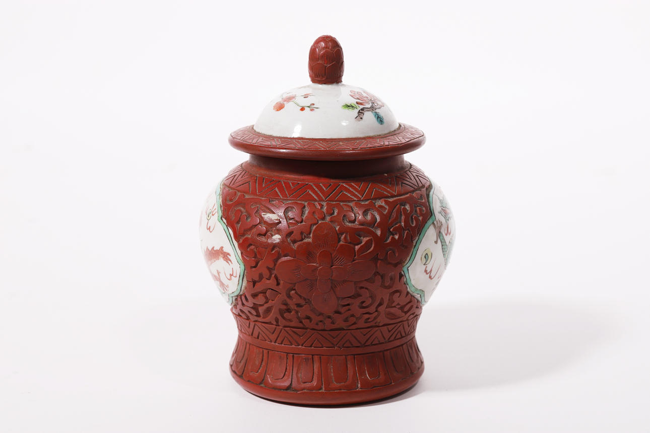 PORCELAIN VASE COVERED WITH CHINESE LACQUER.