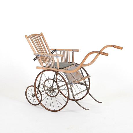 Frame in chromed metal, reclining and seat part removable, length 92, width 48, height 100 cm. Baby lift, length 70 cm.