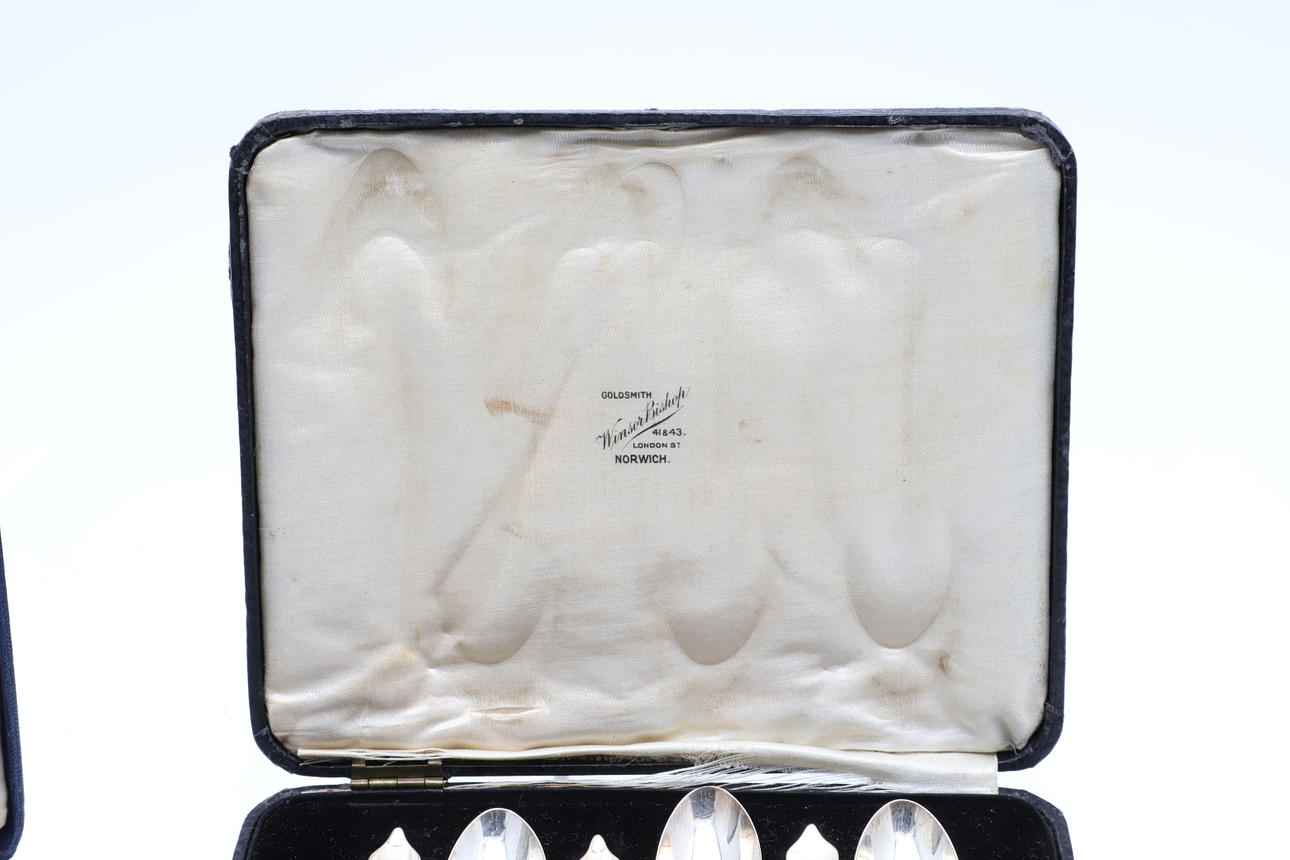2615627. TWO CASED SETS OF SILVER SPOONS.