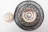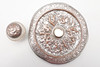 some wear to the plated high points, dents to the base rim but no damage.