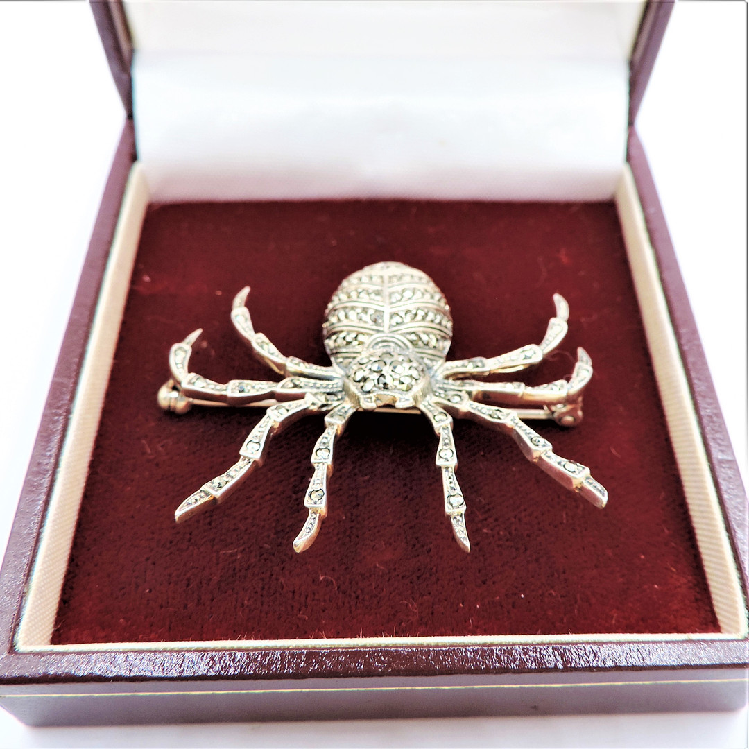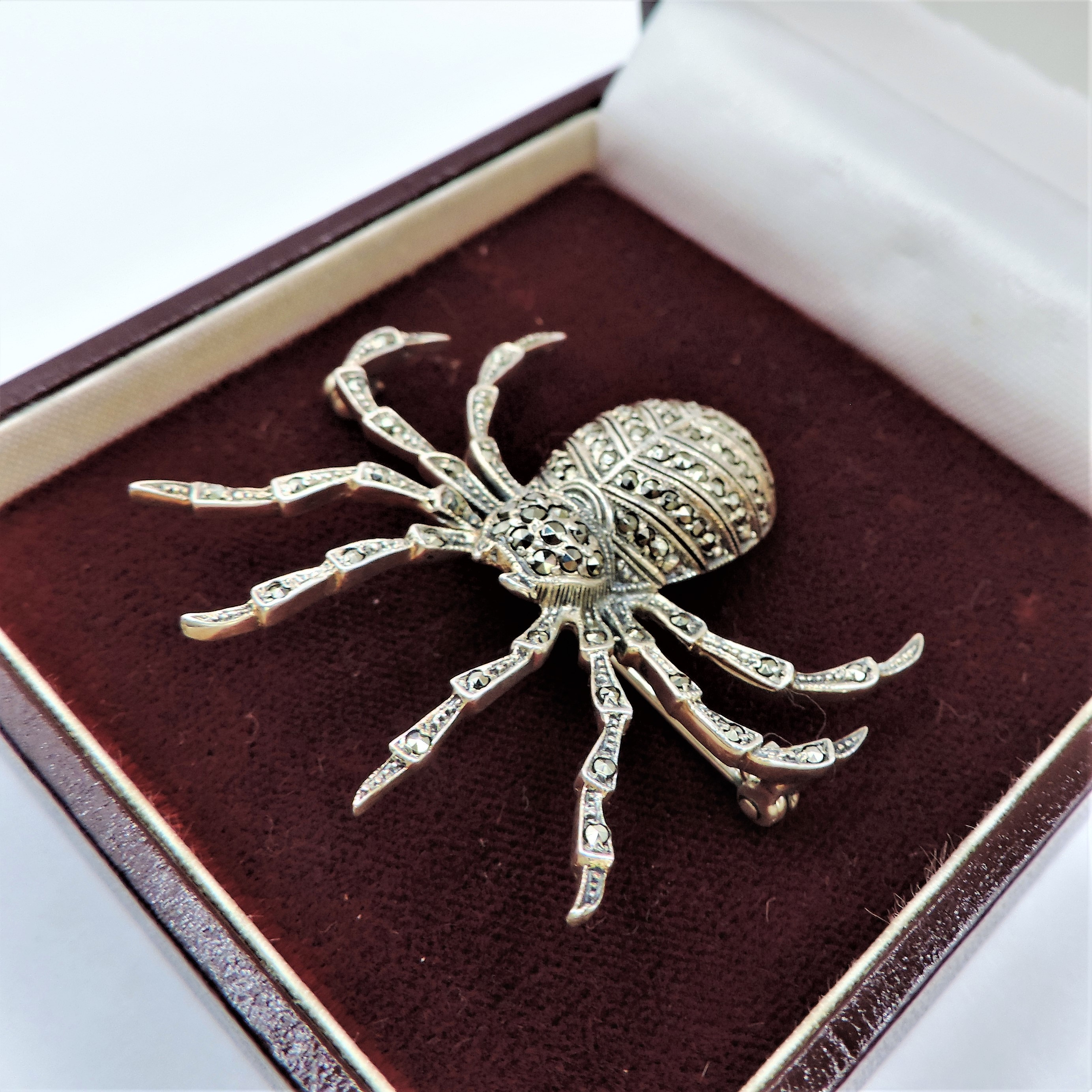 2618644. STERLING SILVER MARCASITE SPIDER BROOCH.